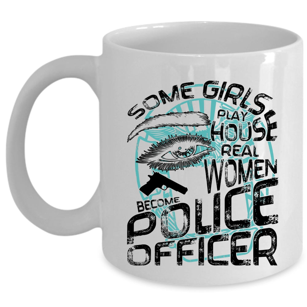 Real Women Become Police Officer Coffee Mug, Some Girls Play House Cup