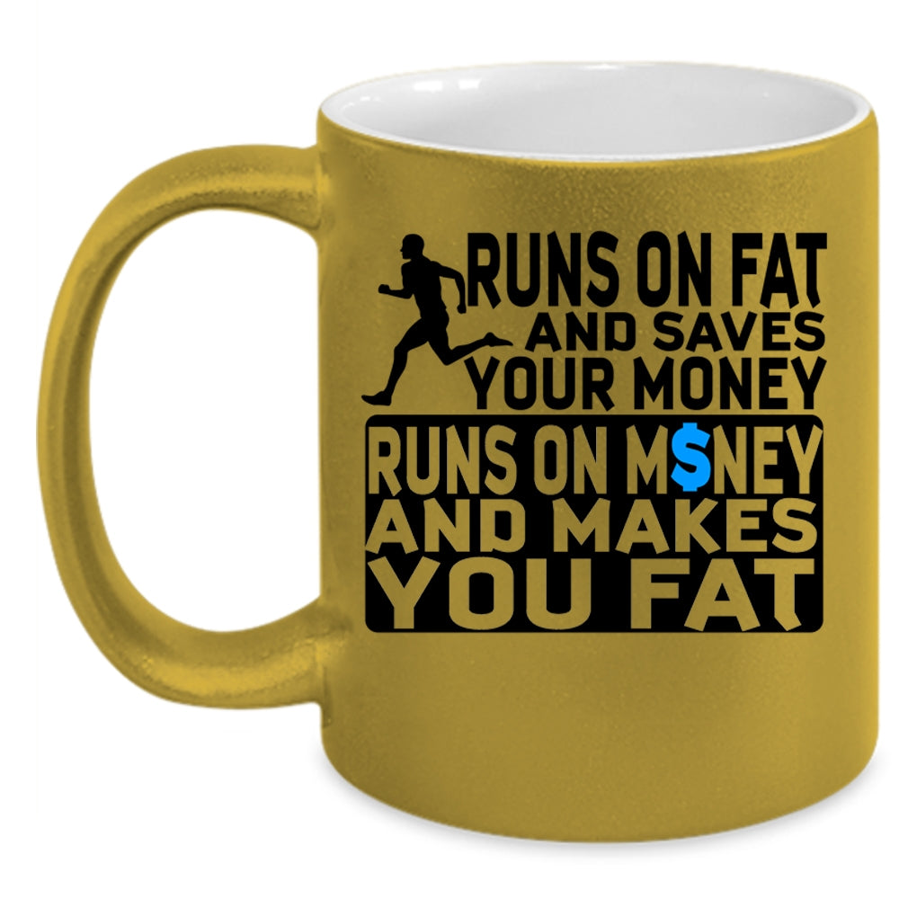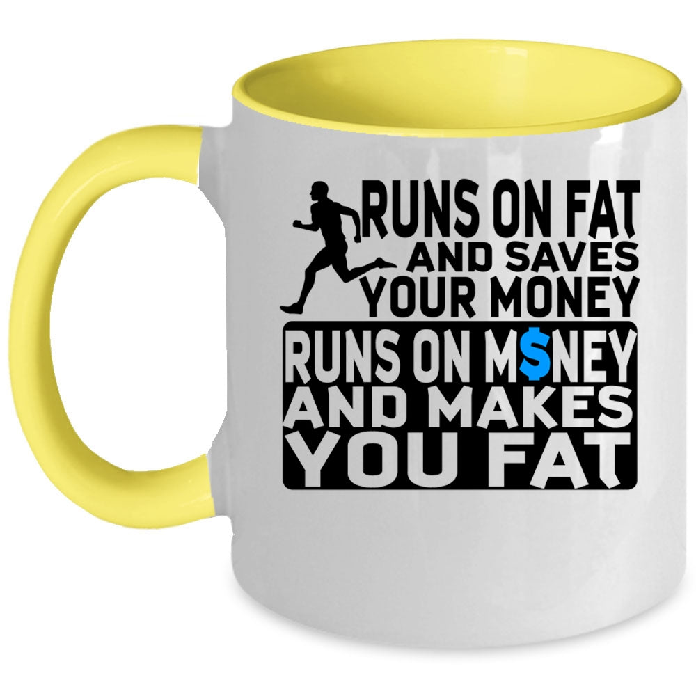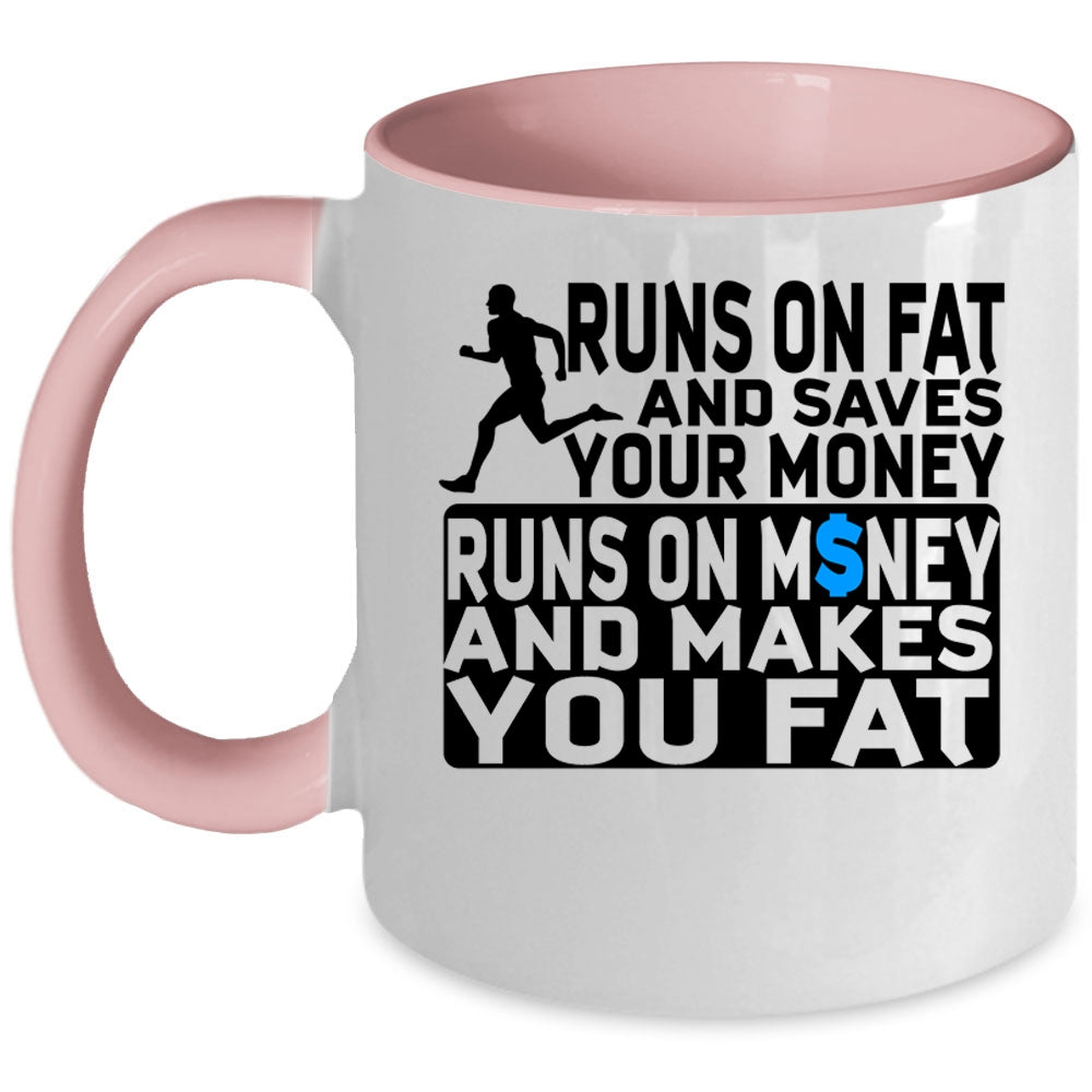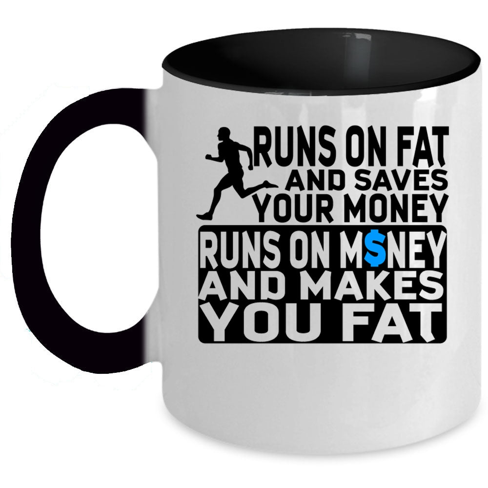 Runs On Money And Makes You Fat Coffee Mug, Runs On Fat And Saves Your Money Accent Mug