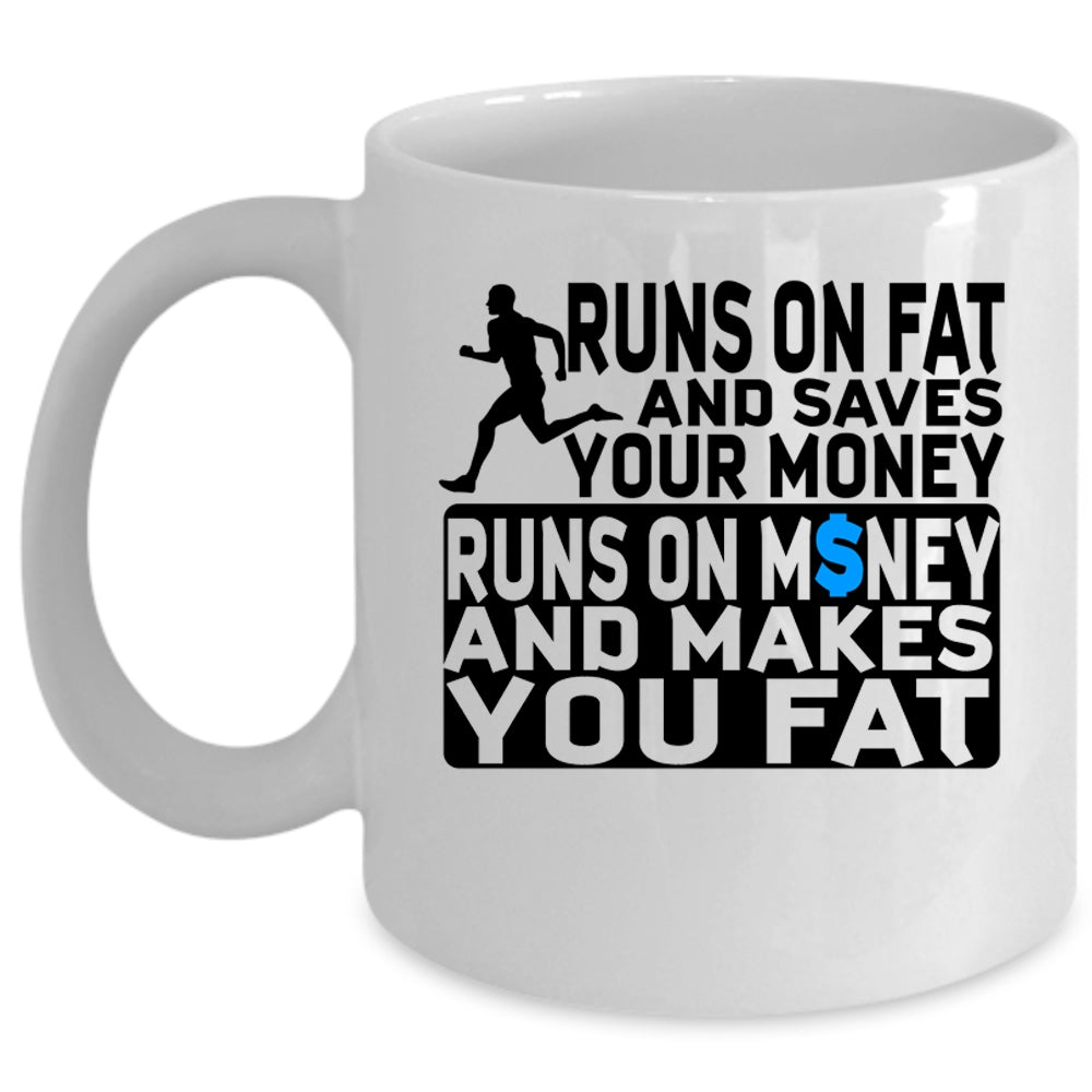 Runs On Money And Makes You Fat Coffee Mug, Runs On Fat And Saves Your Money Cup