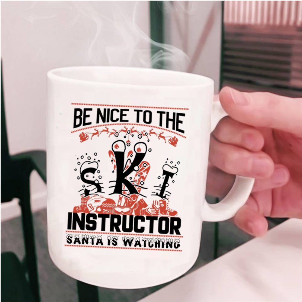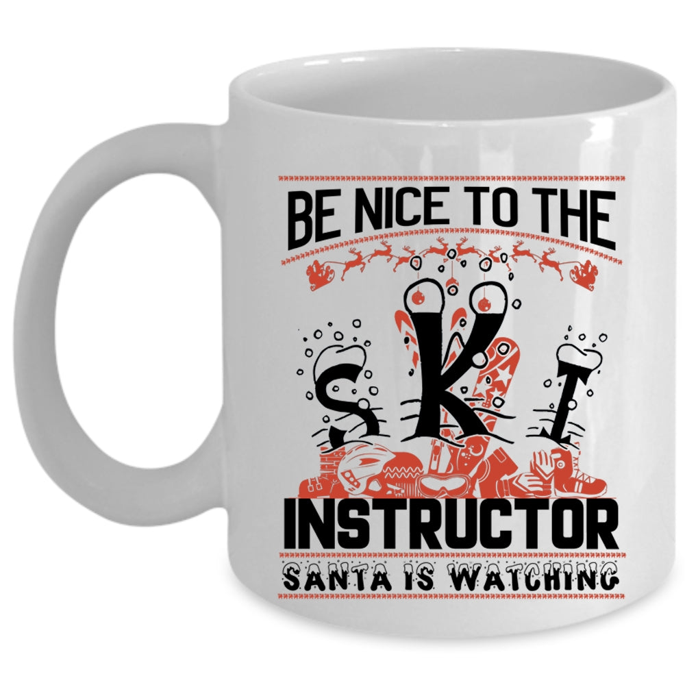 Santa Is Watching Coffee Mug, Be Nice To The Ski Instructor Cup