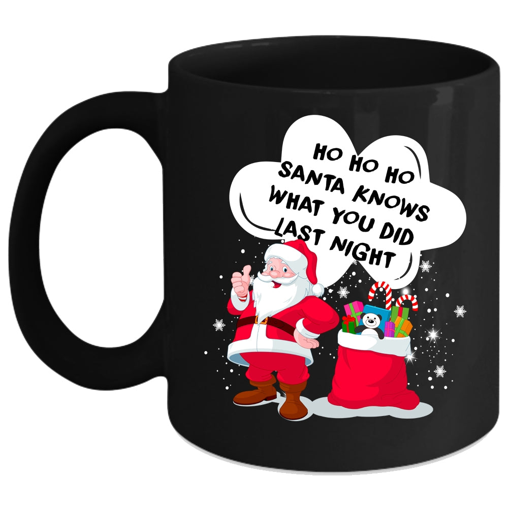 Santa Knows What You Did Last Night Coffee Mug, Cute Santa Coffee Cup