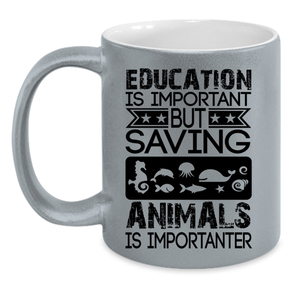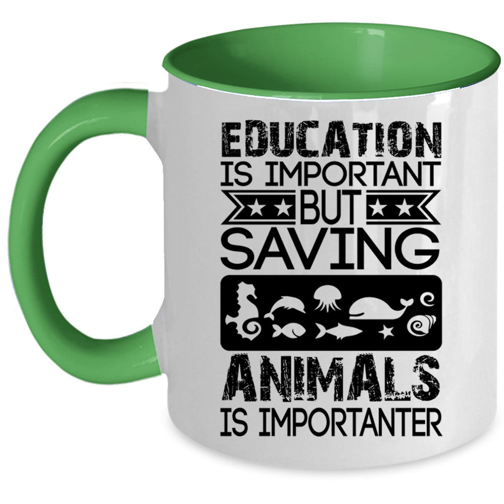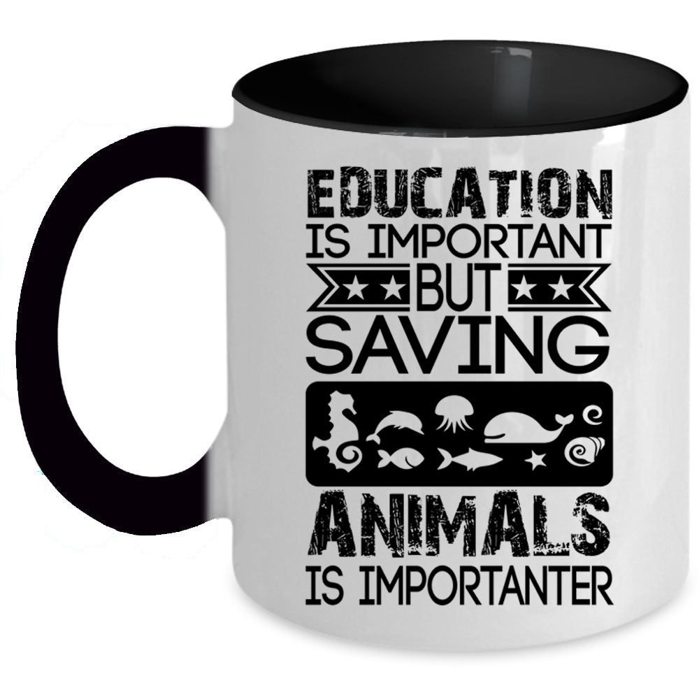 Saving Animals Is Importanter Coffee Mug, Education Is Important Accent Mug