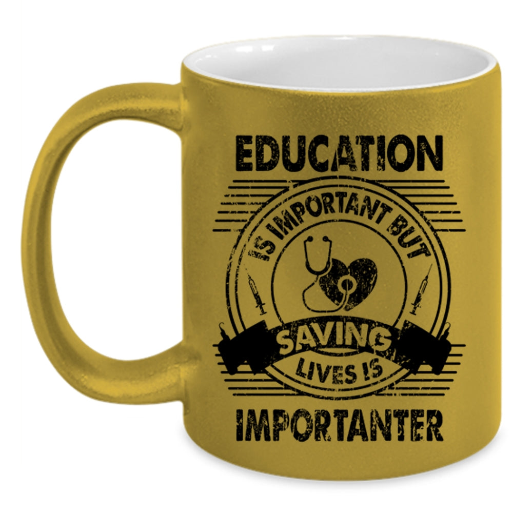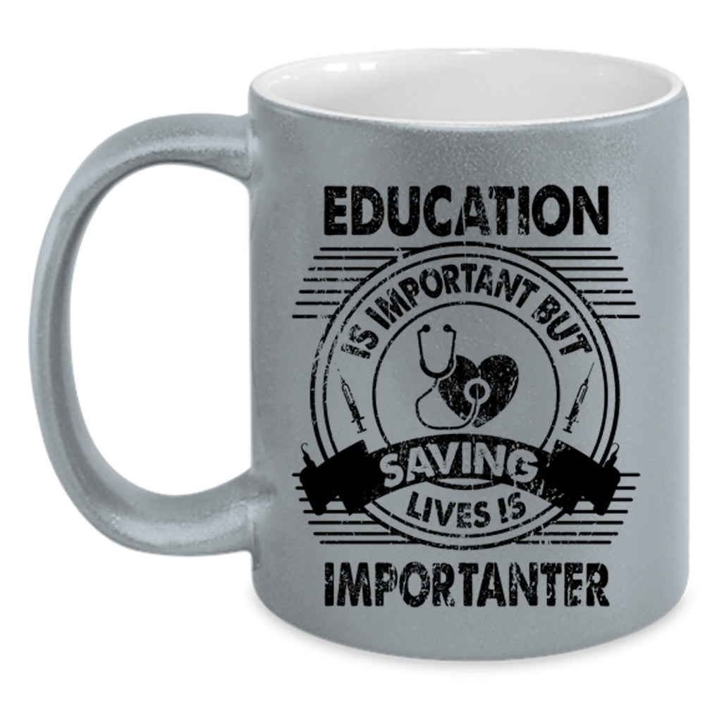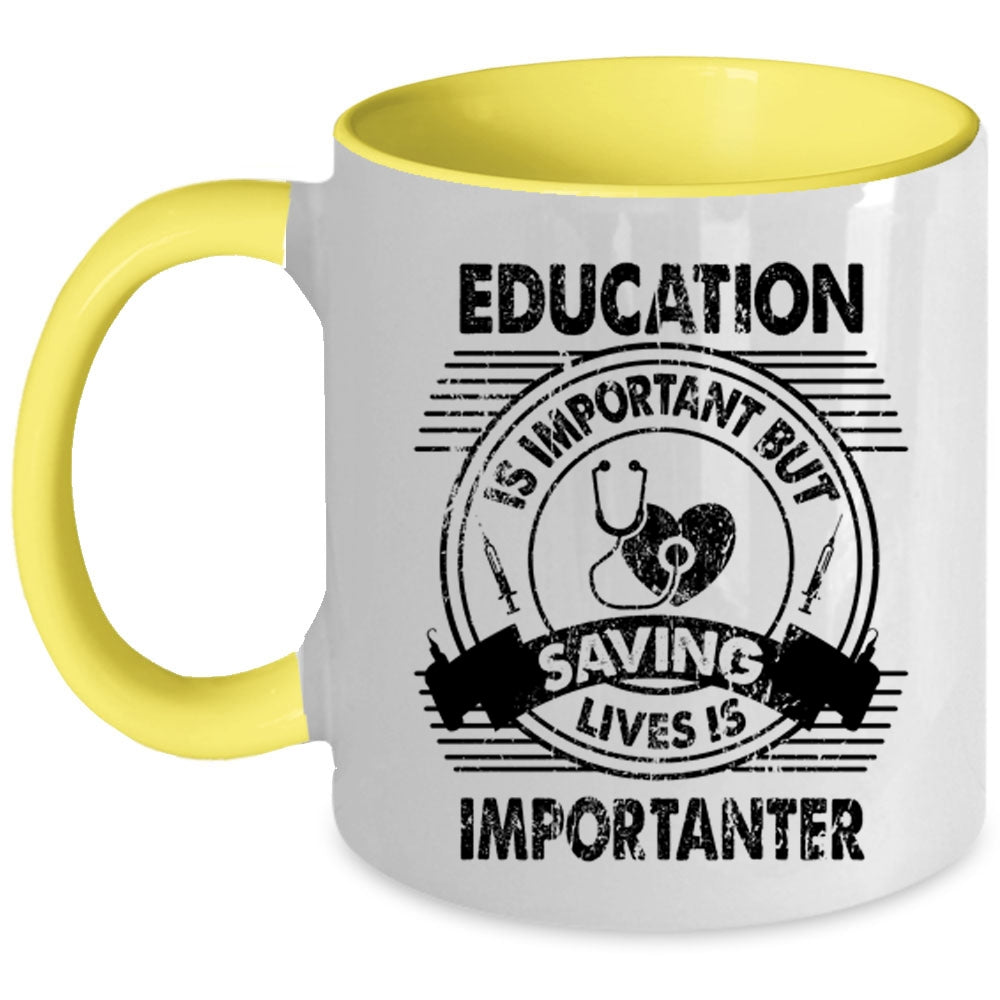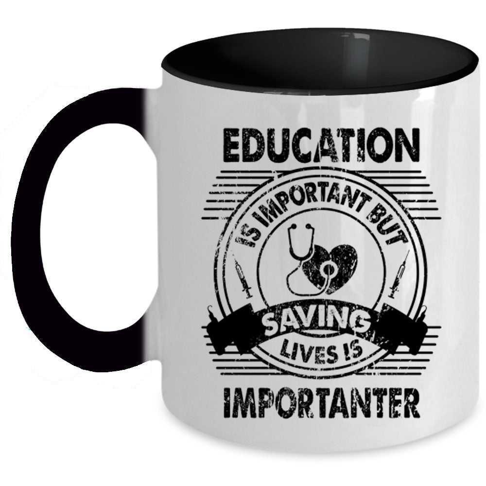 Saving Lives Is Importanter Coffee Mug, Education Is Important Accent Mug