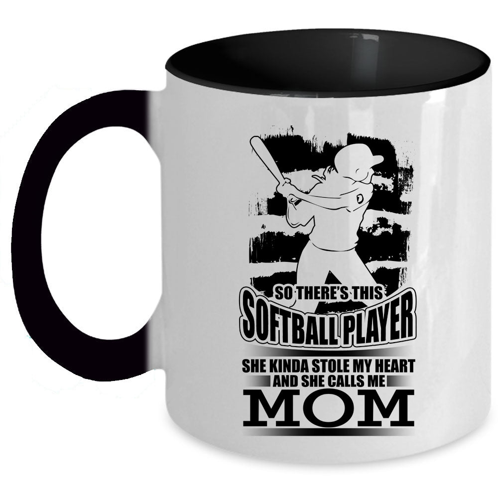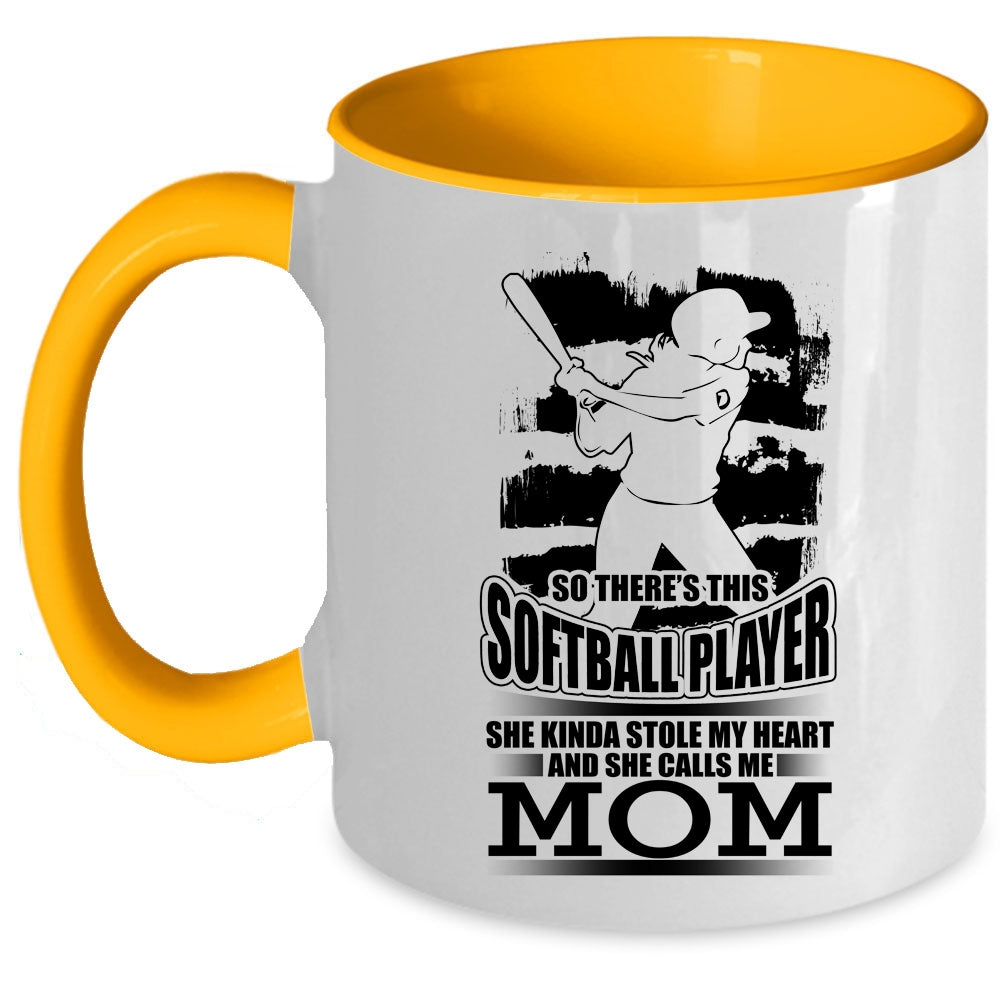 She Calls Me Mom Coffee Mug, This Softball Player Kinda Stole My Heart Accent Mug
