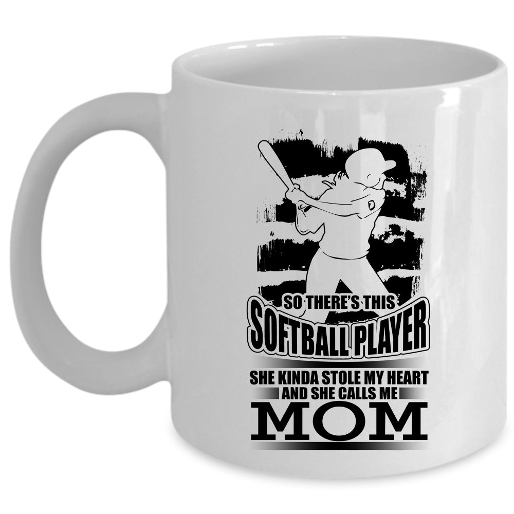 She Calls Me Mom Coffee Mug, This Softball Player Kinda Stole My Heart Cup