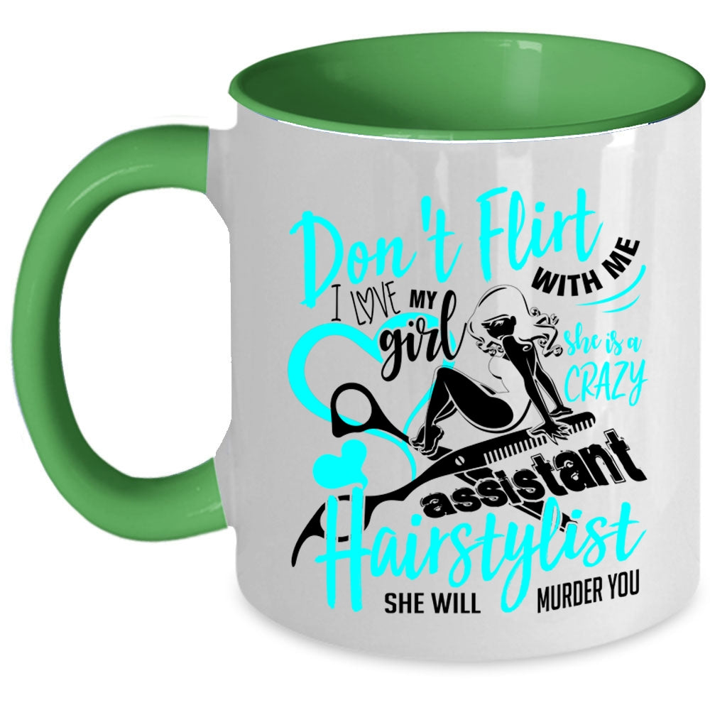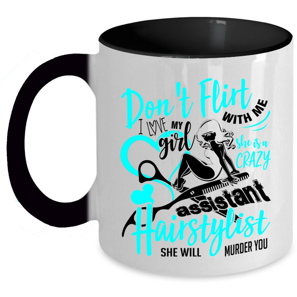 She Is A Crazy Assistant Hairstylist Coffee Mug, I Love My Girl Accent Mug