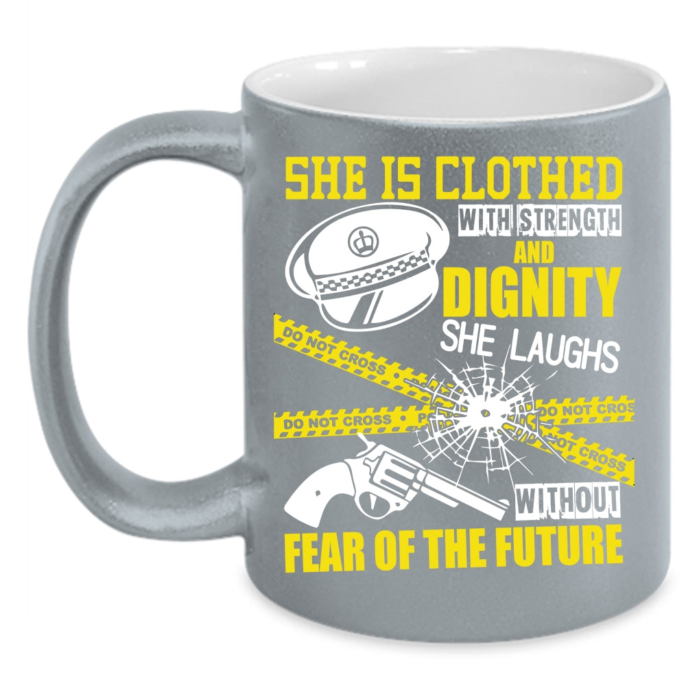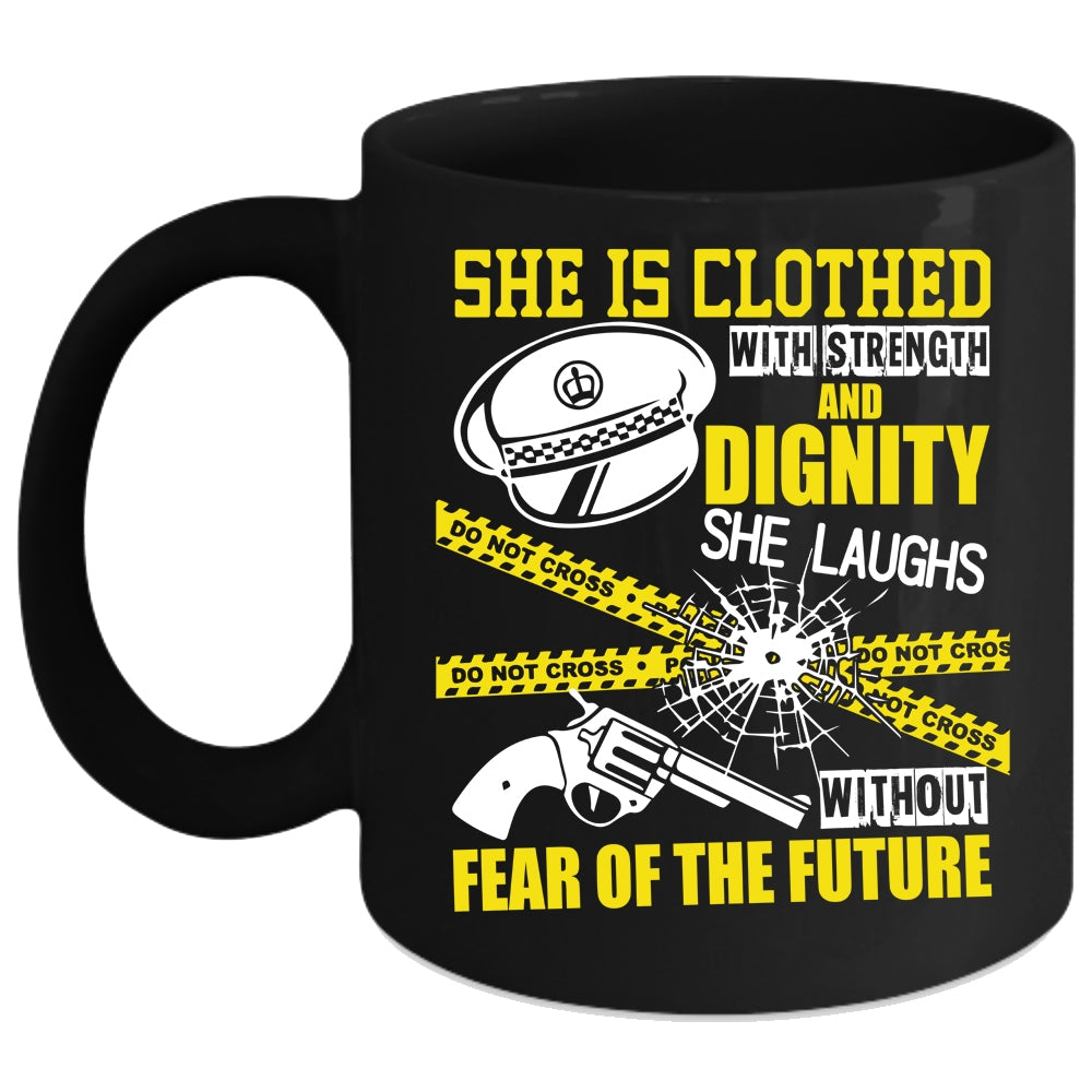 She Is Clothed With Strength Coffee Mug, Female Policeman Coffee Cup