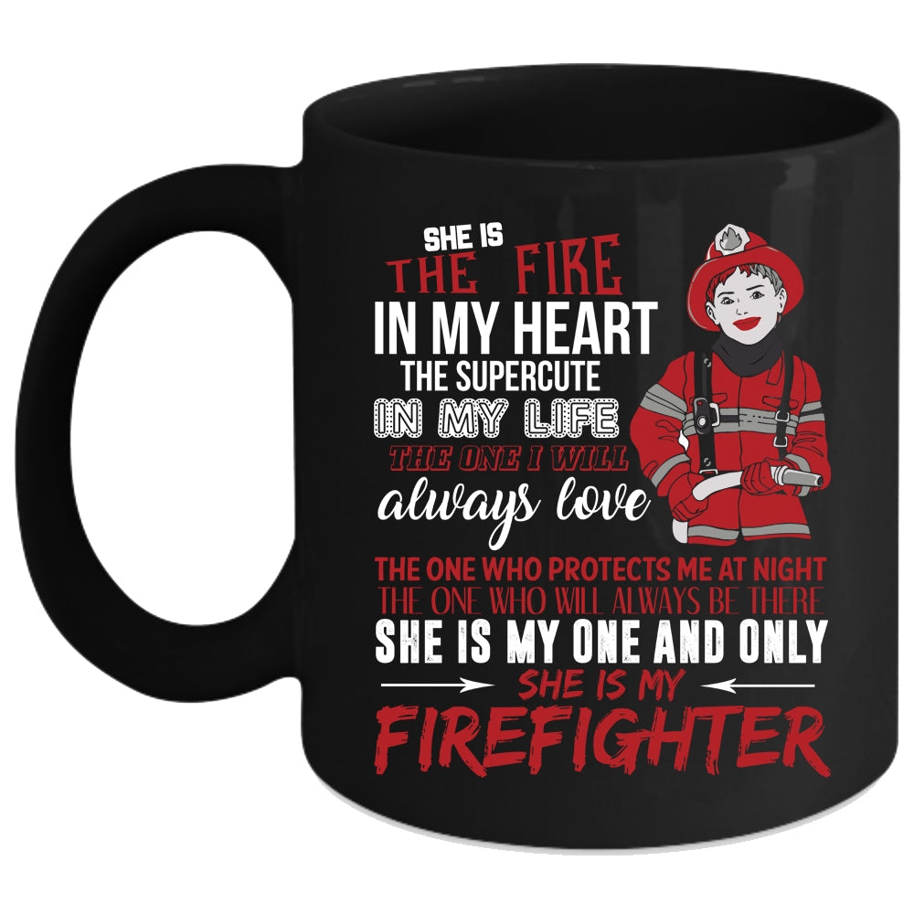 She Is The Fire In My Heart Coffee Mug, She Is My Firefighter Coffee Cup