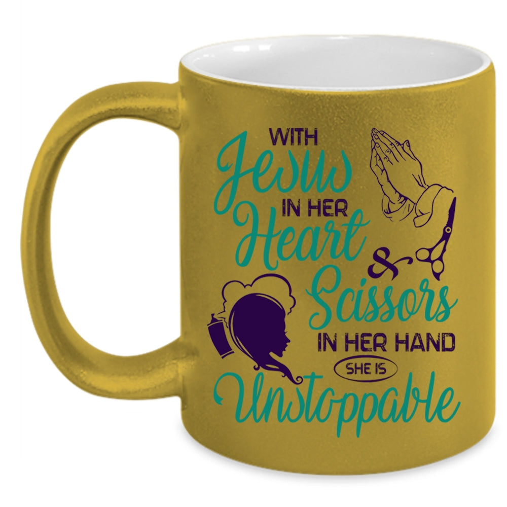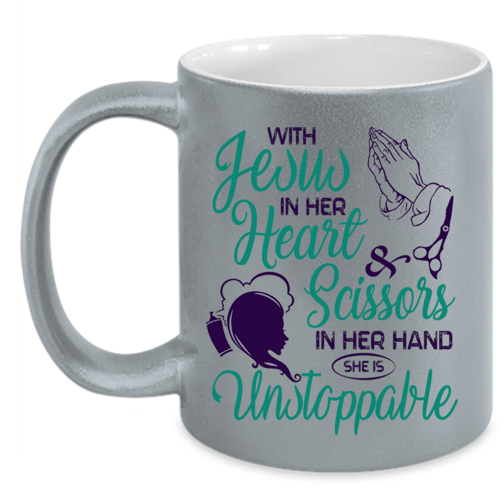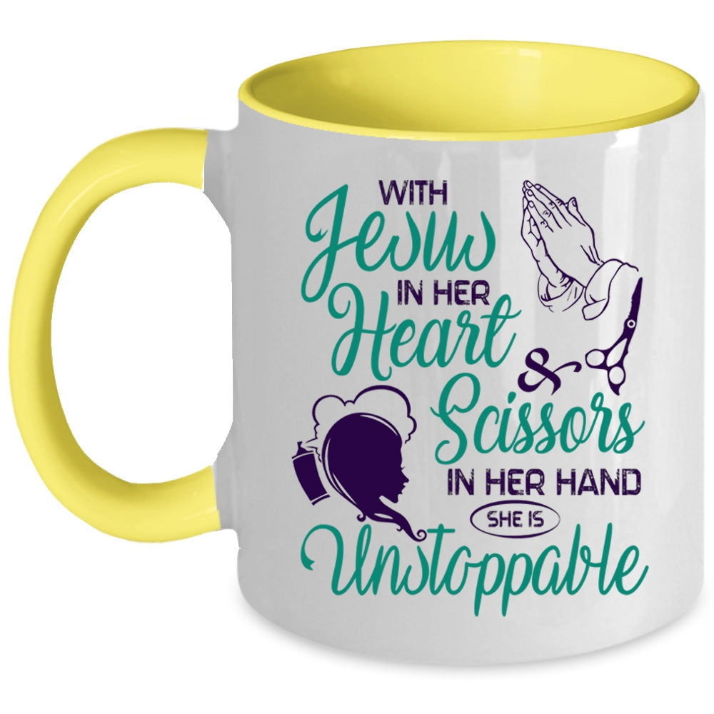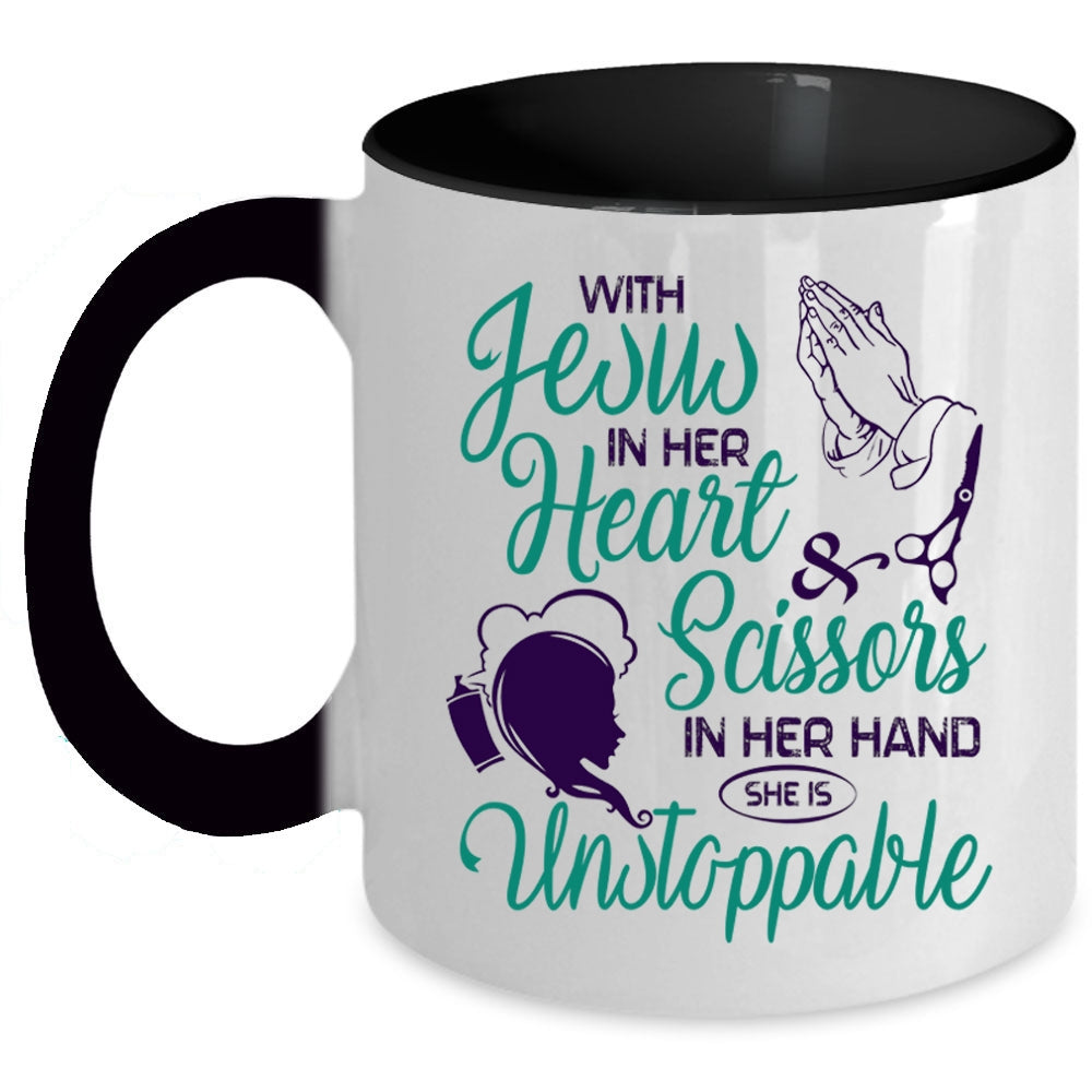 She Is Unstoppable Coffee Mug, With Scissors In Her Hand Accent Mug