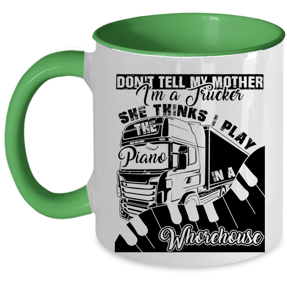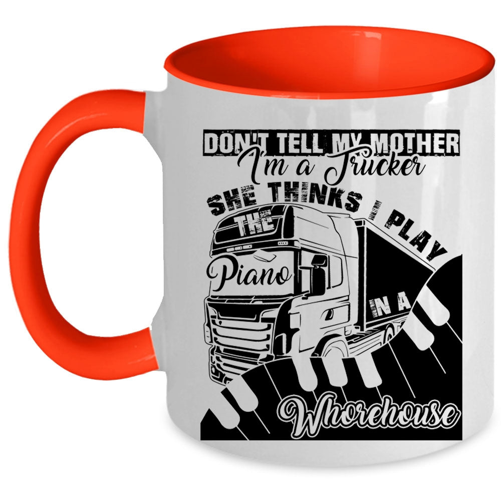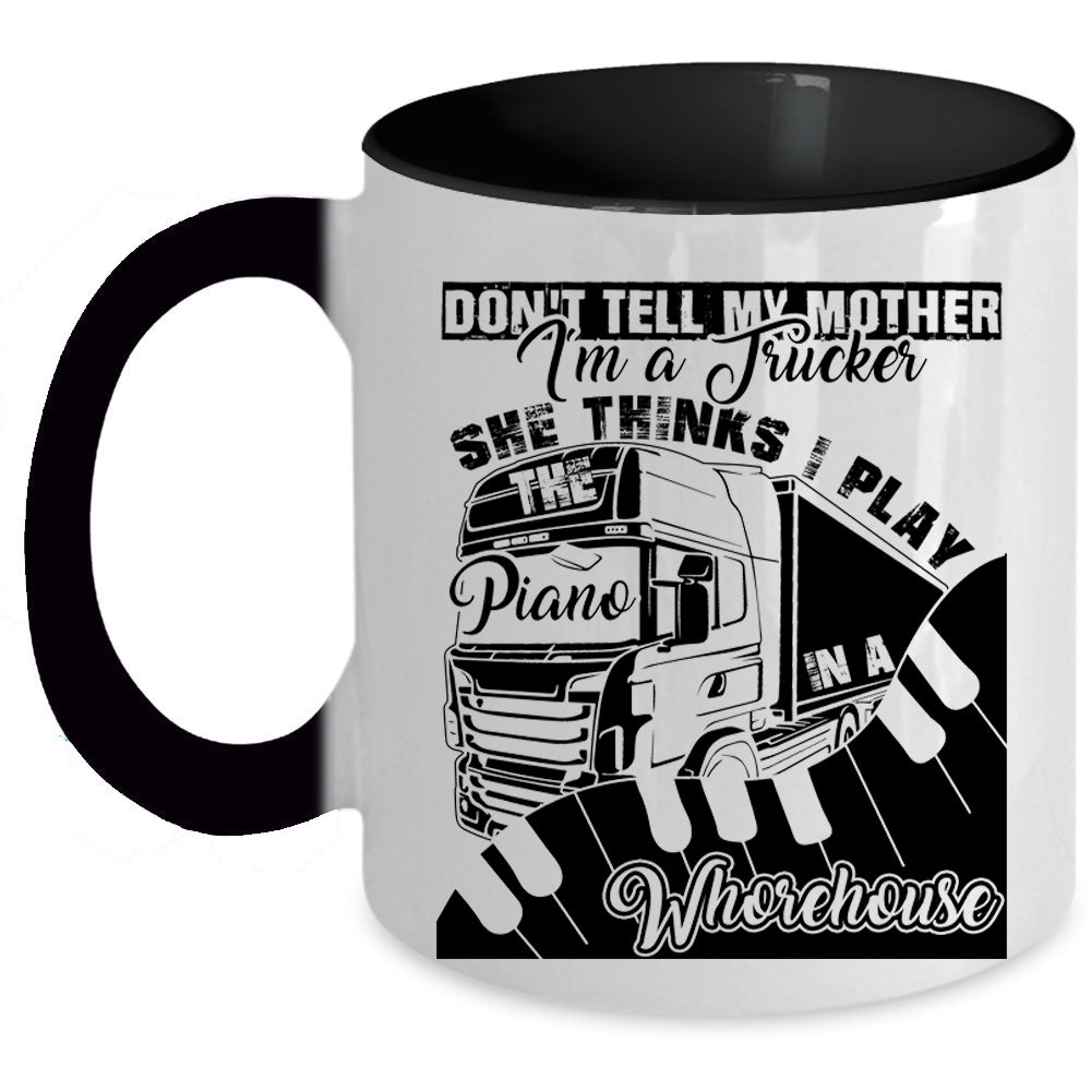 She Thinks I Play Piano Coffee Mug, Don't Tell My Mother I'm A Trucker Accent Mug