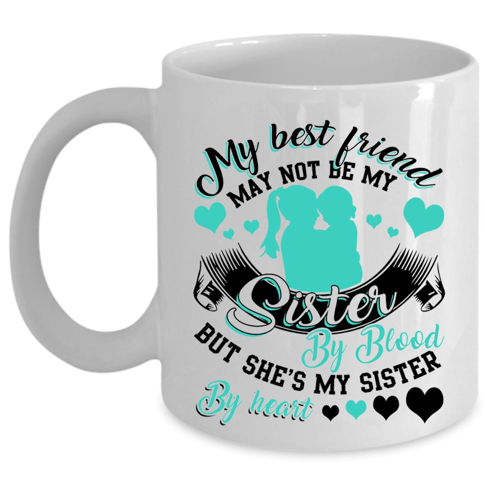She's My Sister By Heart Coffee Mug, My Best Friend May Not Be My Sister Cup
