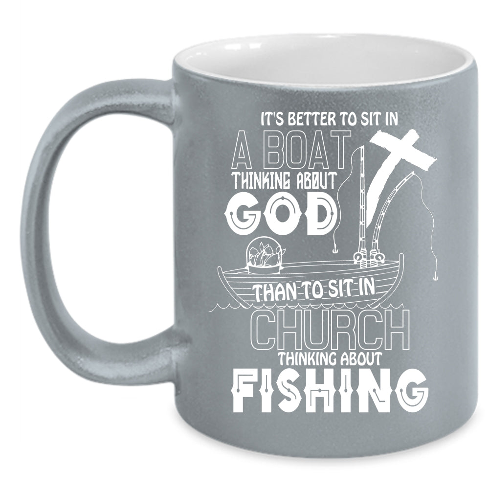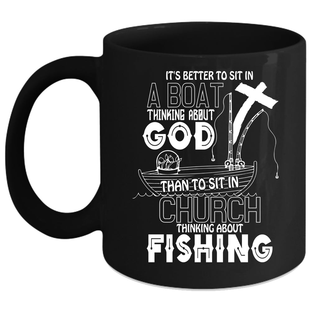 Sit In Church Thinking About Fishing Coffee Mug, Awesome Fisher Coffee Cup