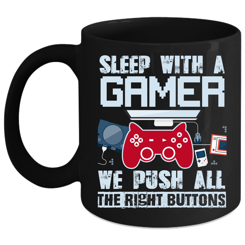 Sleep With A Gamer Coffee Mug, We Push All The Rigght Buttons Coffee Cup