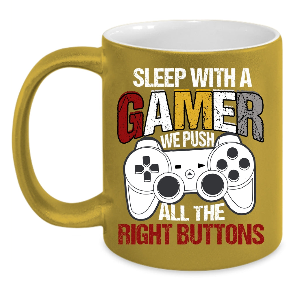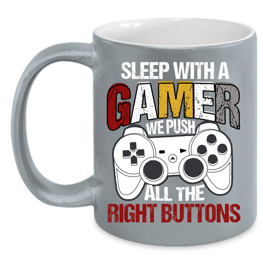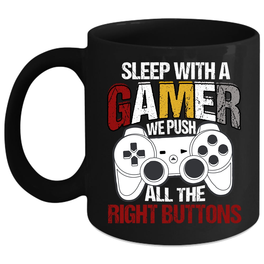 Sleep With A Gamer Coffee Mug, We Push All The right Buttons Coffee Cup