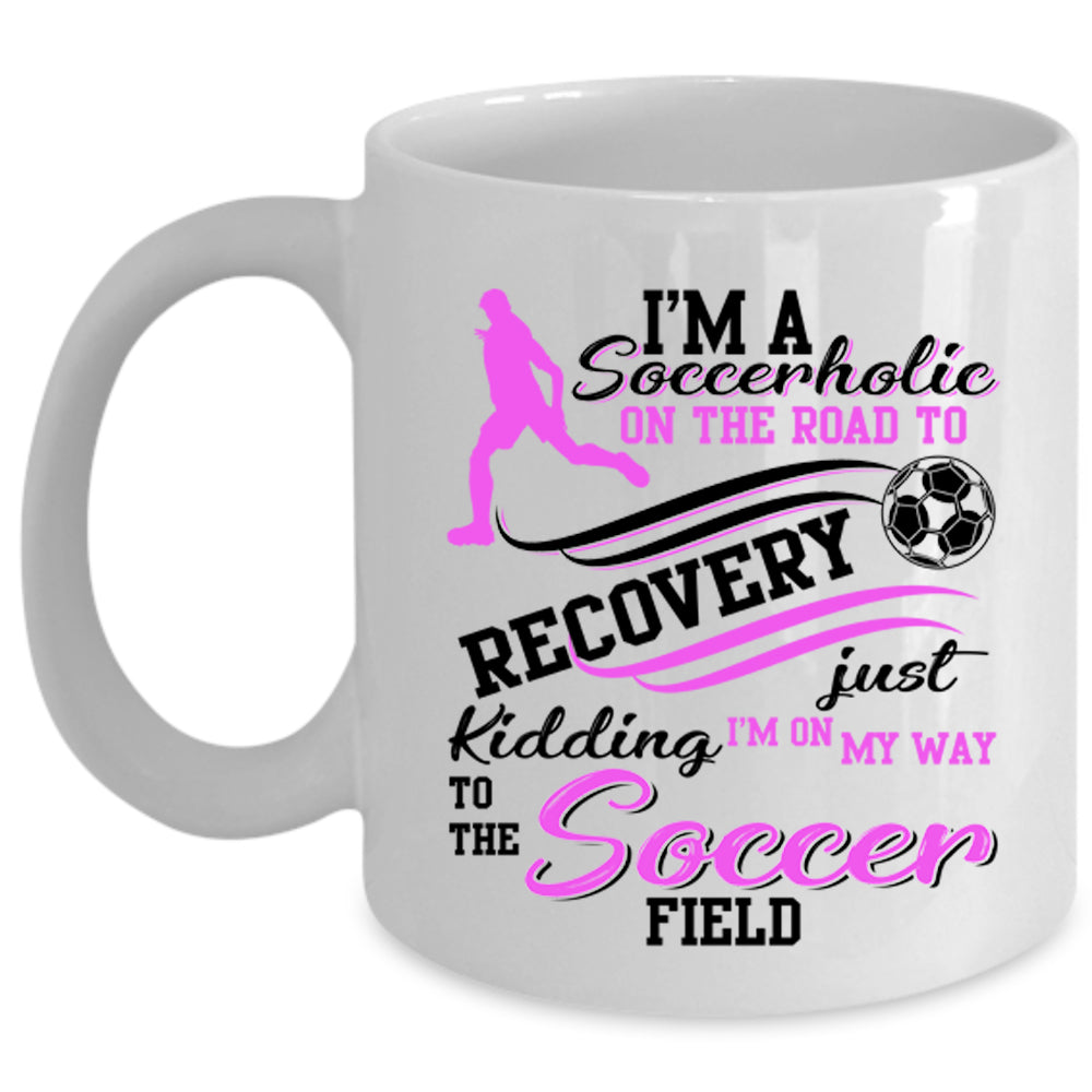 Soccer Field Coffee Mug, I'm A Soccerholic On The Road Cup