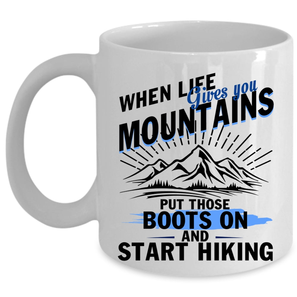 Start Hiking Coffee Mug, When Life Gives You Mountains Cup