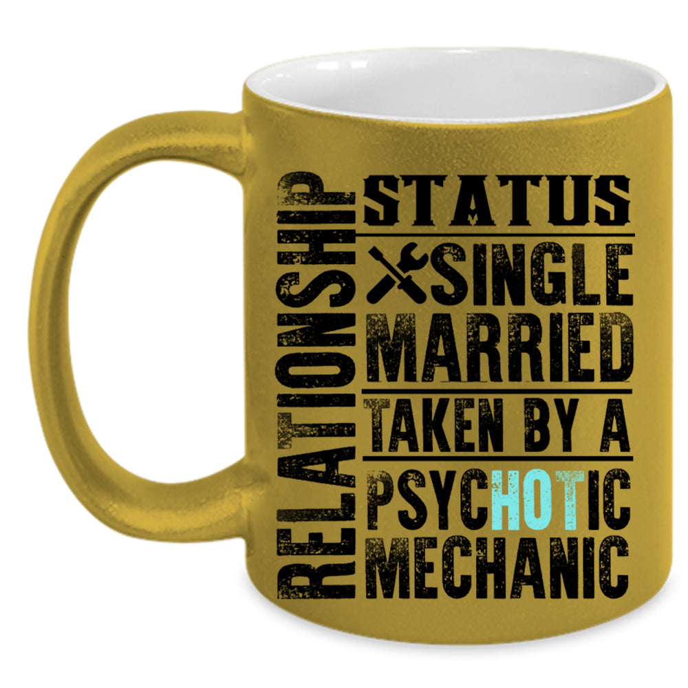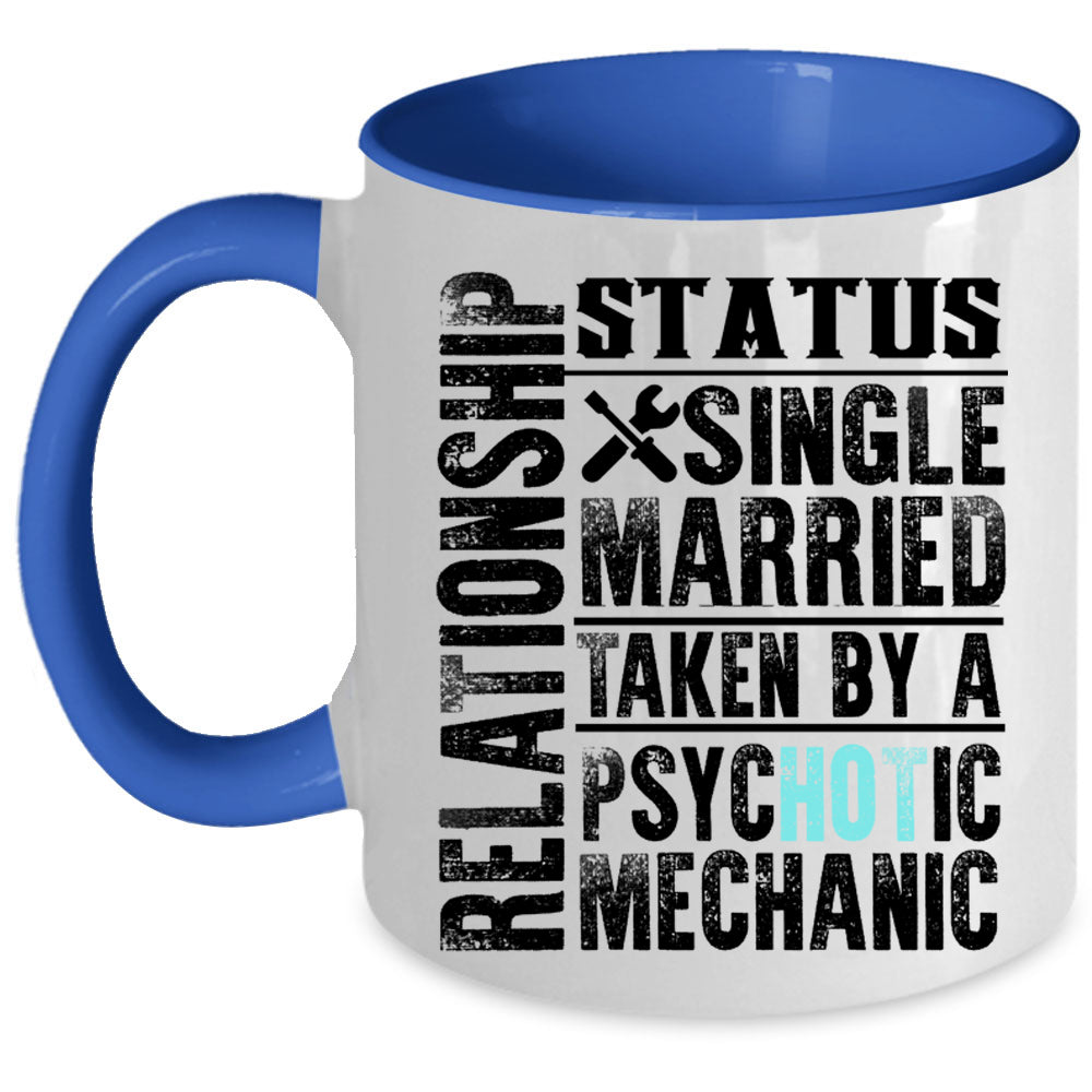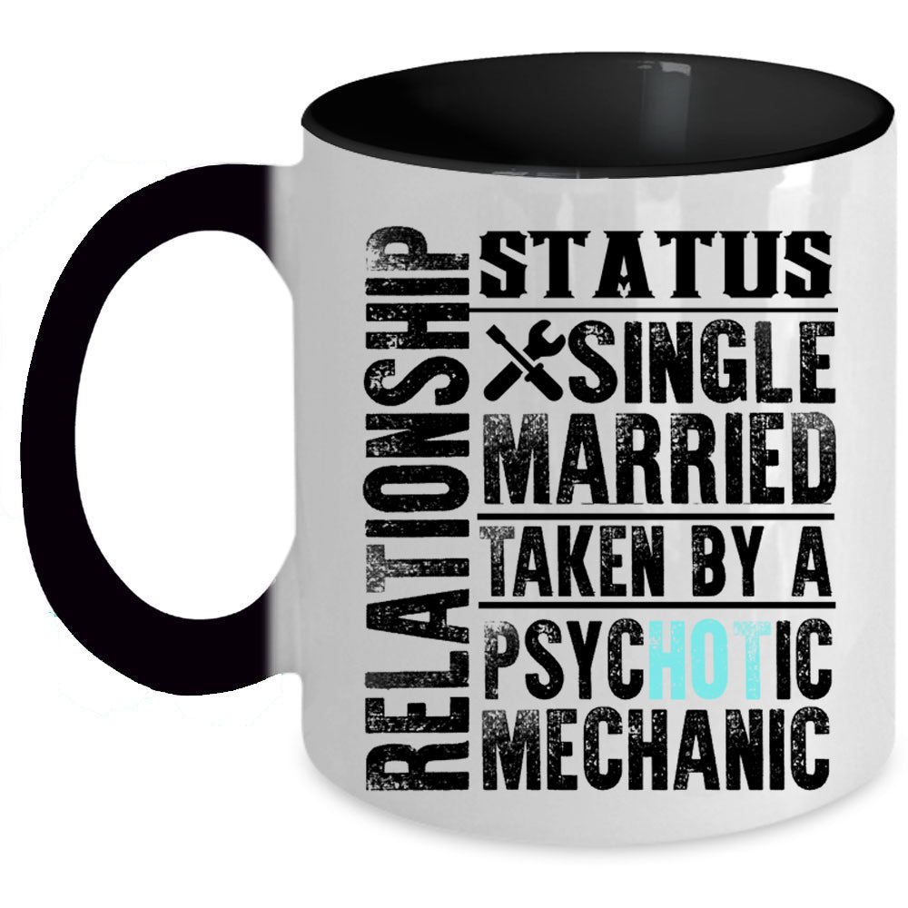 Taken By A Psychotic Mechanic Coffee Mug, Relationship Status Accent Mug