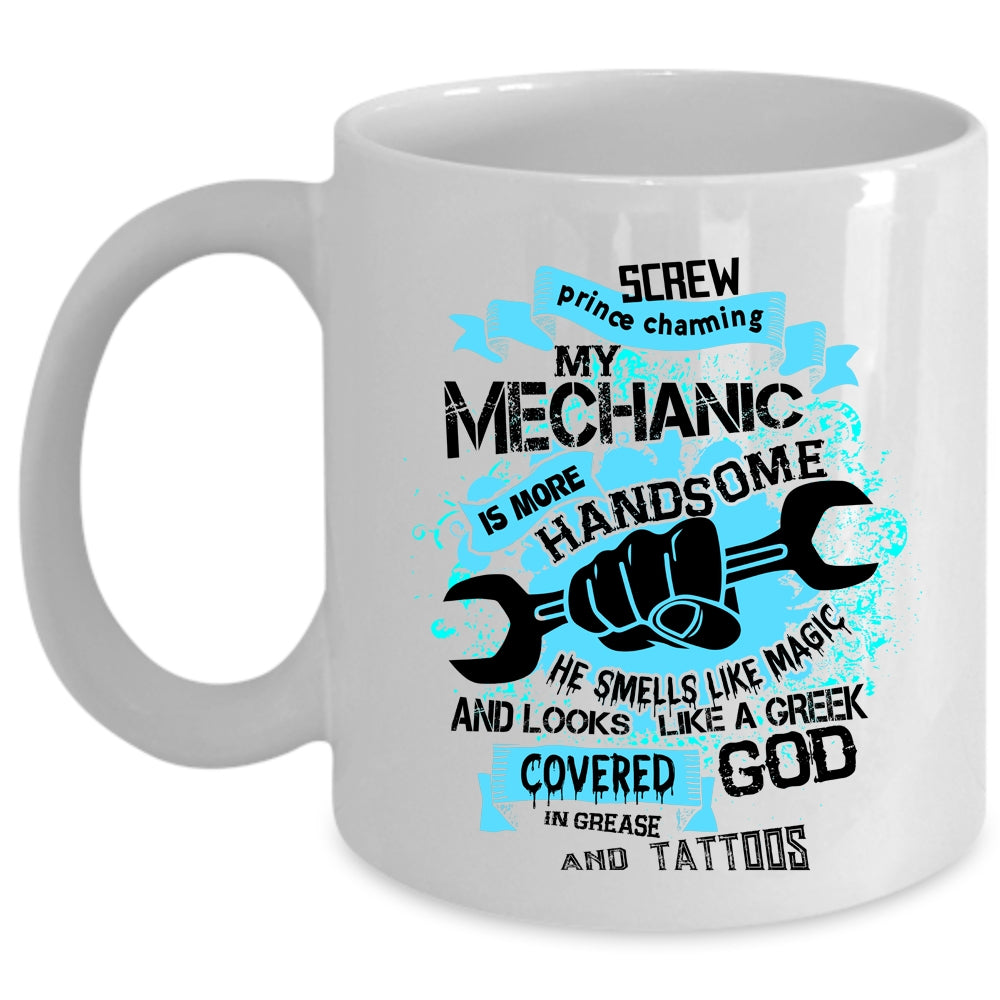 Tattooed Mechanic Coffee Mug, My Mechanic Is More Handsome Cup