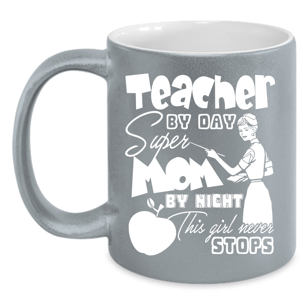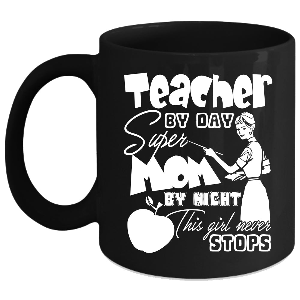 Teacher By Day Mom By Night Coffee Mug, This Girl Never Stops Coffee Cup