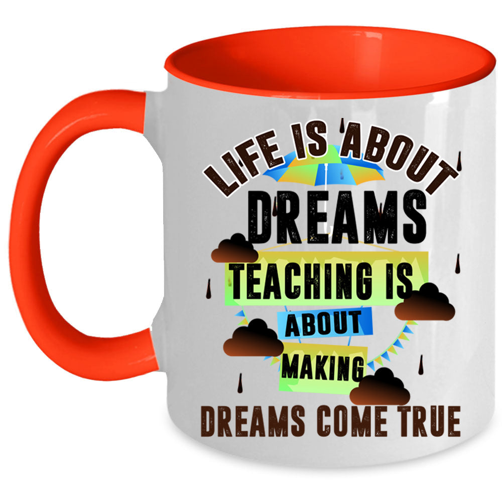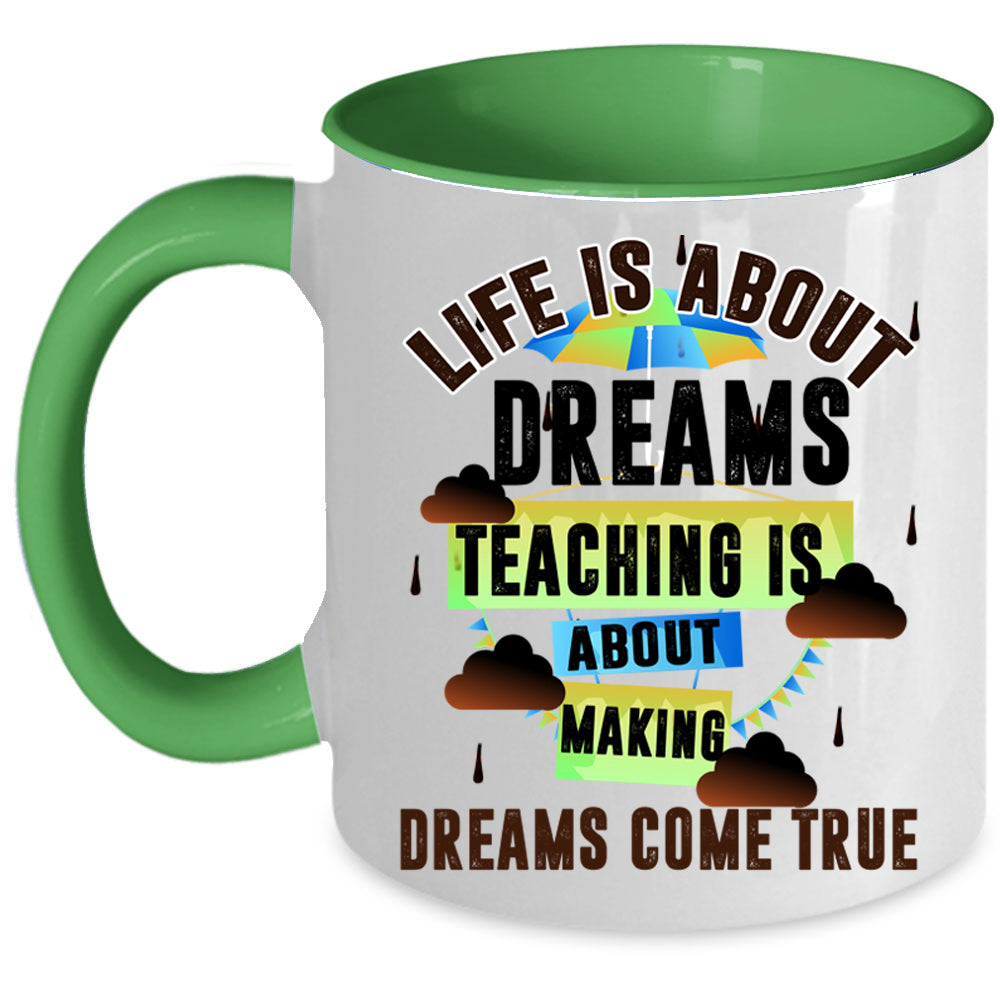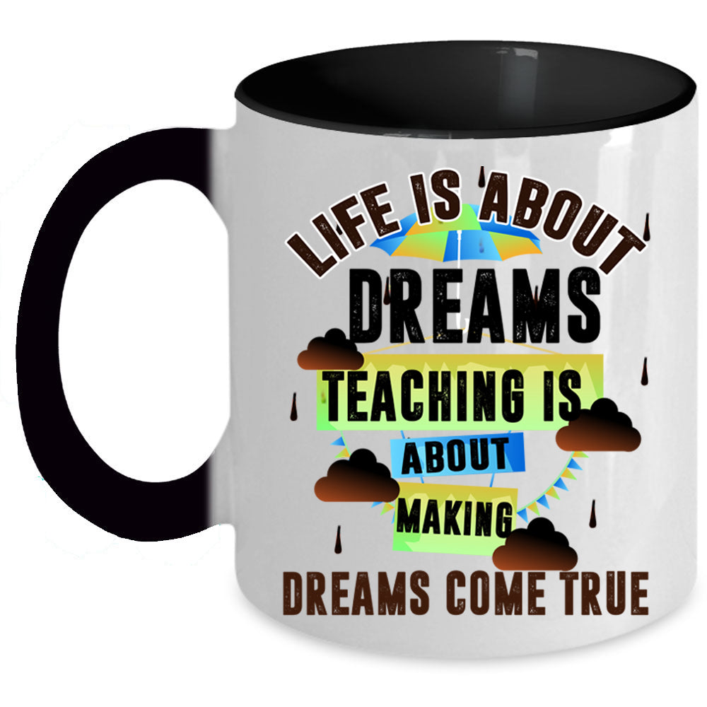 Teaching Is About Making Coffee Mug, Life Is About Dreams Accent Mug