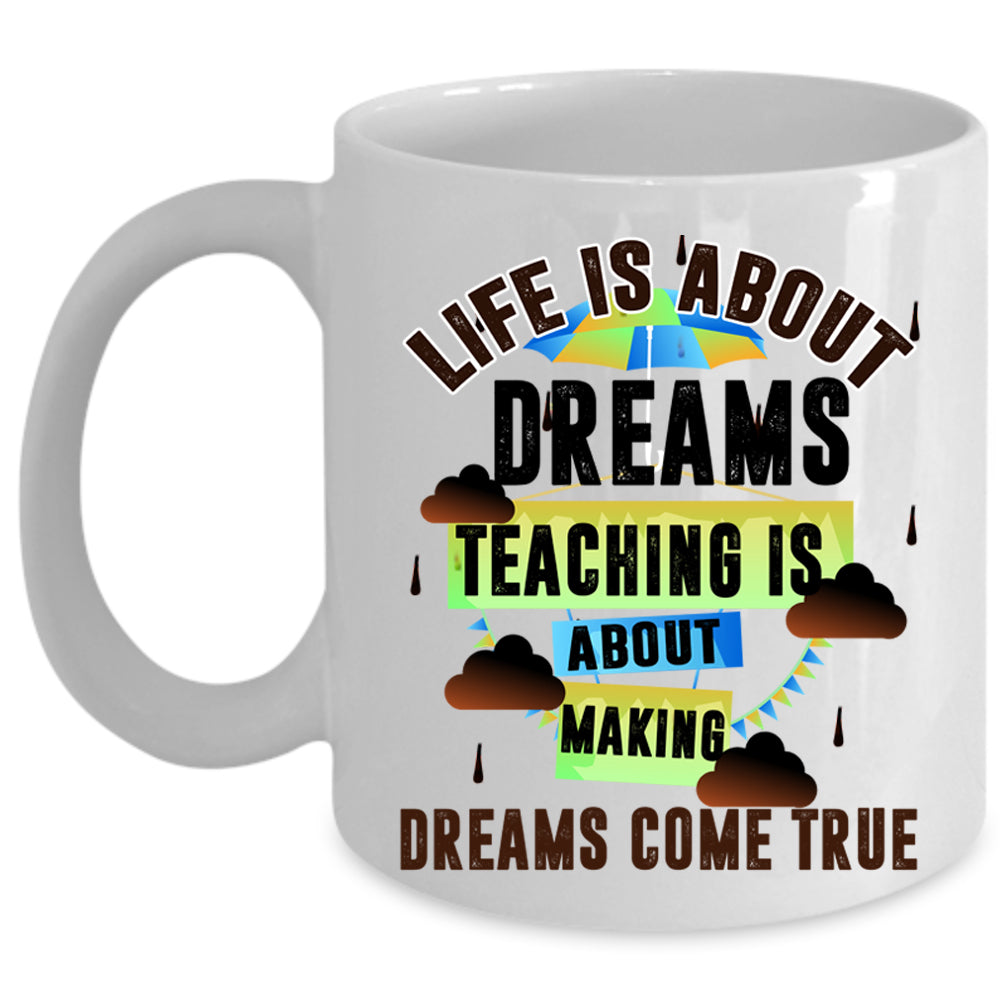 Teaching Is About Making Coffee Mug, Life Is About Dreams Cup
