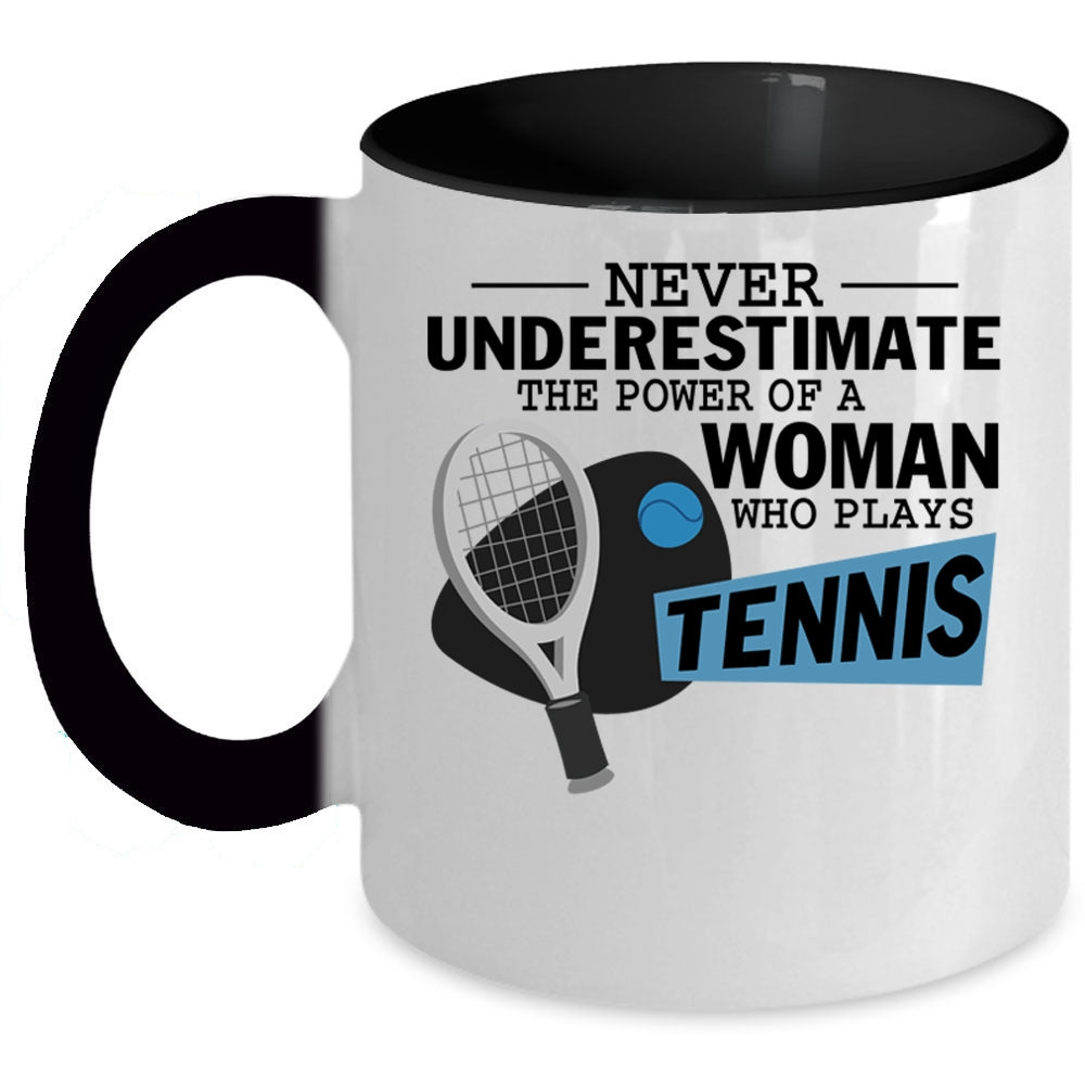 Tennis Mom Coffee Mug, The Power Of A Woman Who Plays Tennis Accent Mug