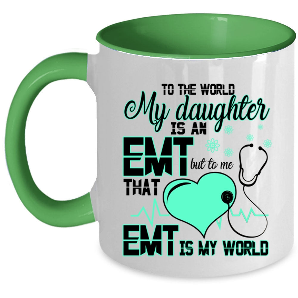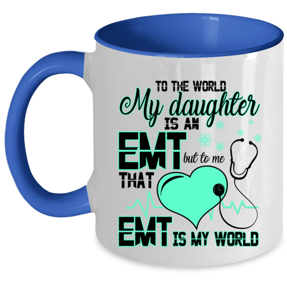 That EMT Is My World Coffee Mug, My Daughter Is An EMT Accent Mug