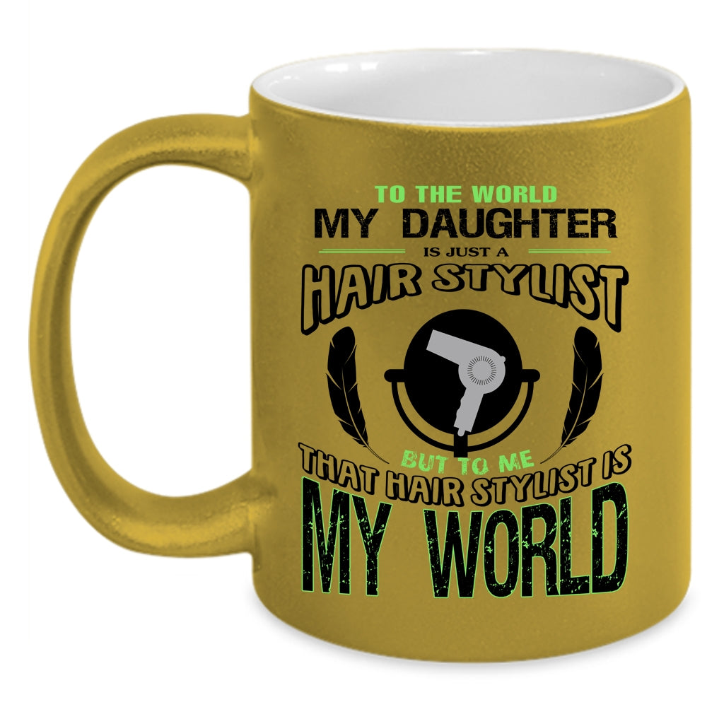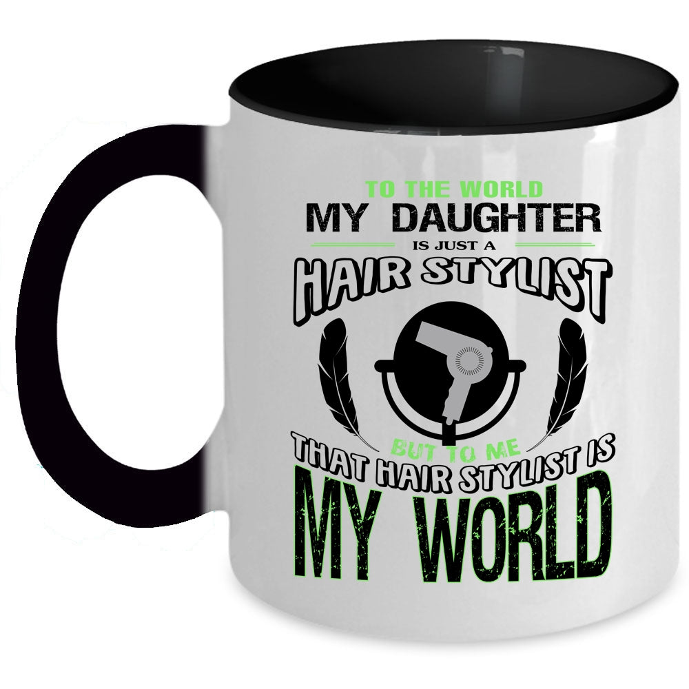 That Hairstylist Is My World Coffee Mug, My Daughter Is Just A Hair Stylist Accent Mug