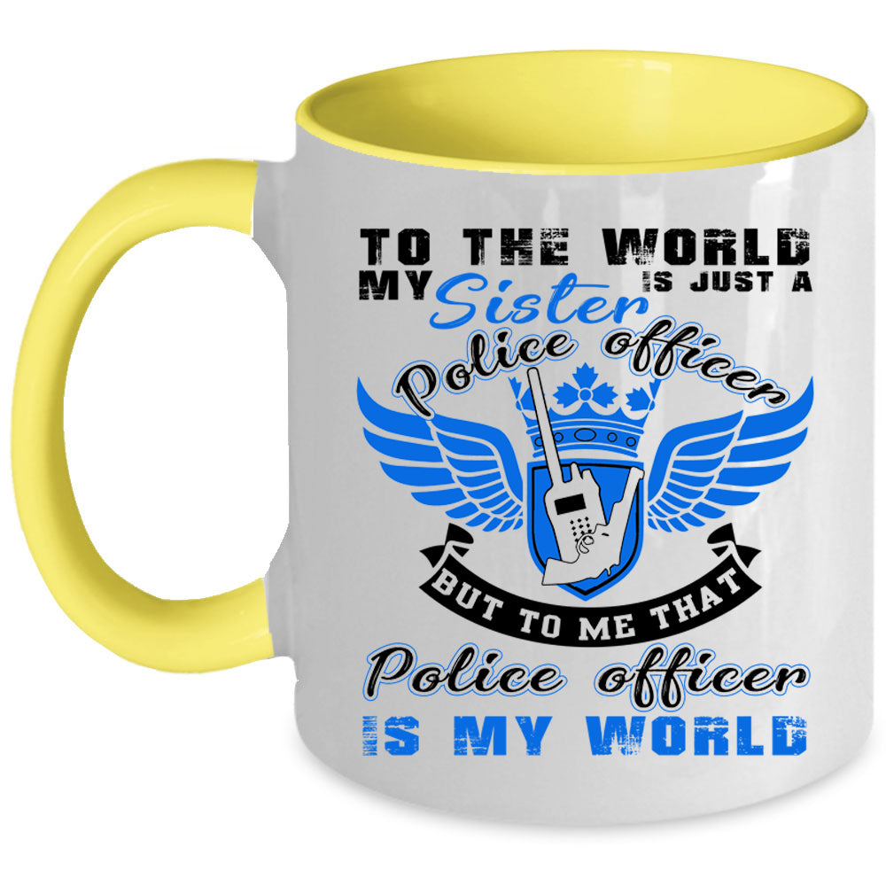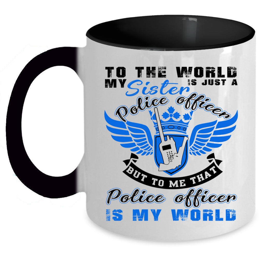That Police Officer Is My World Coffee Mug, My Sister Is A Police Officer Accent Mug