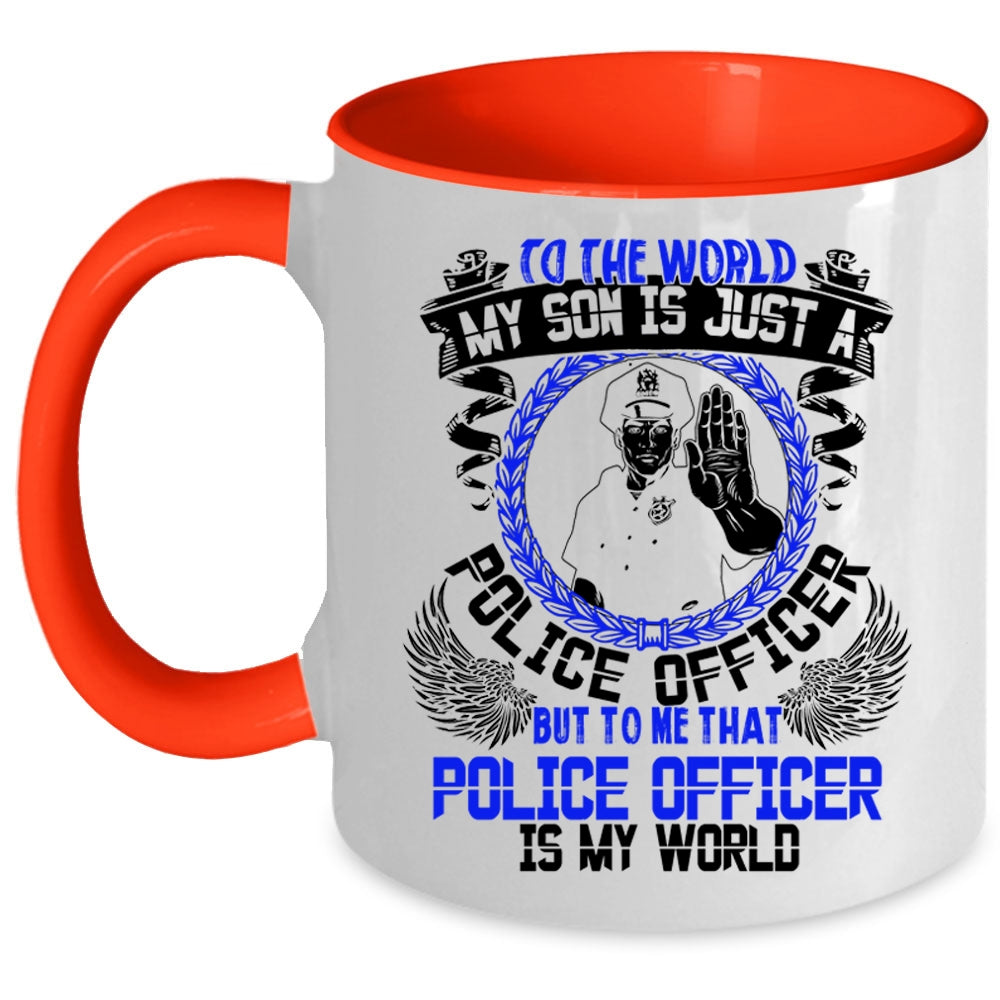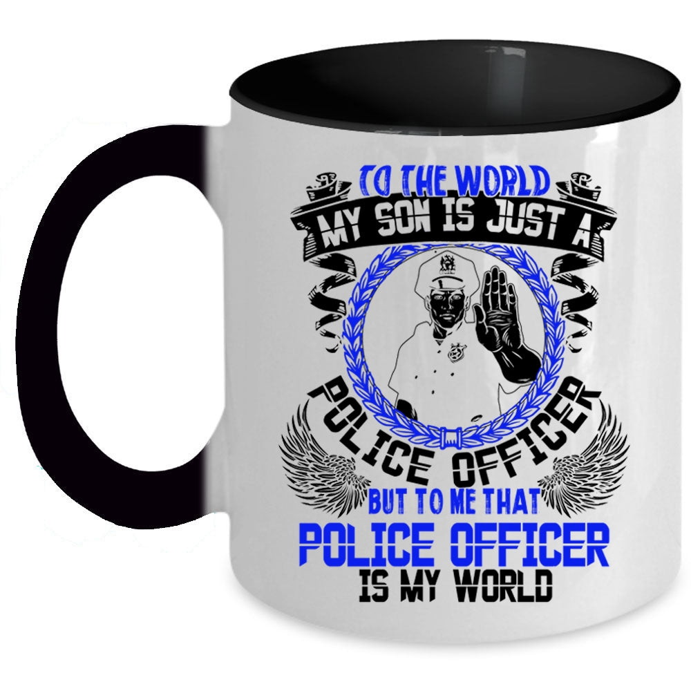 That Police Officer Is My World Coffee Mug, My Son Is Just A Police Officer Accent Mug