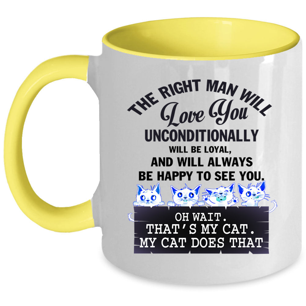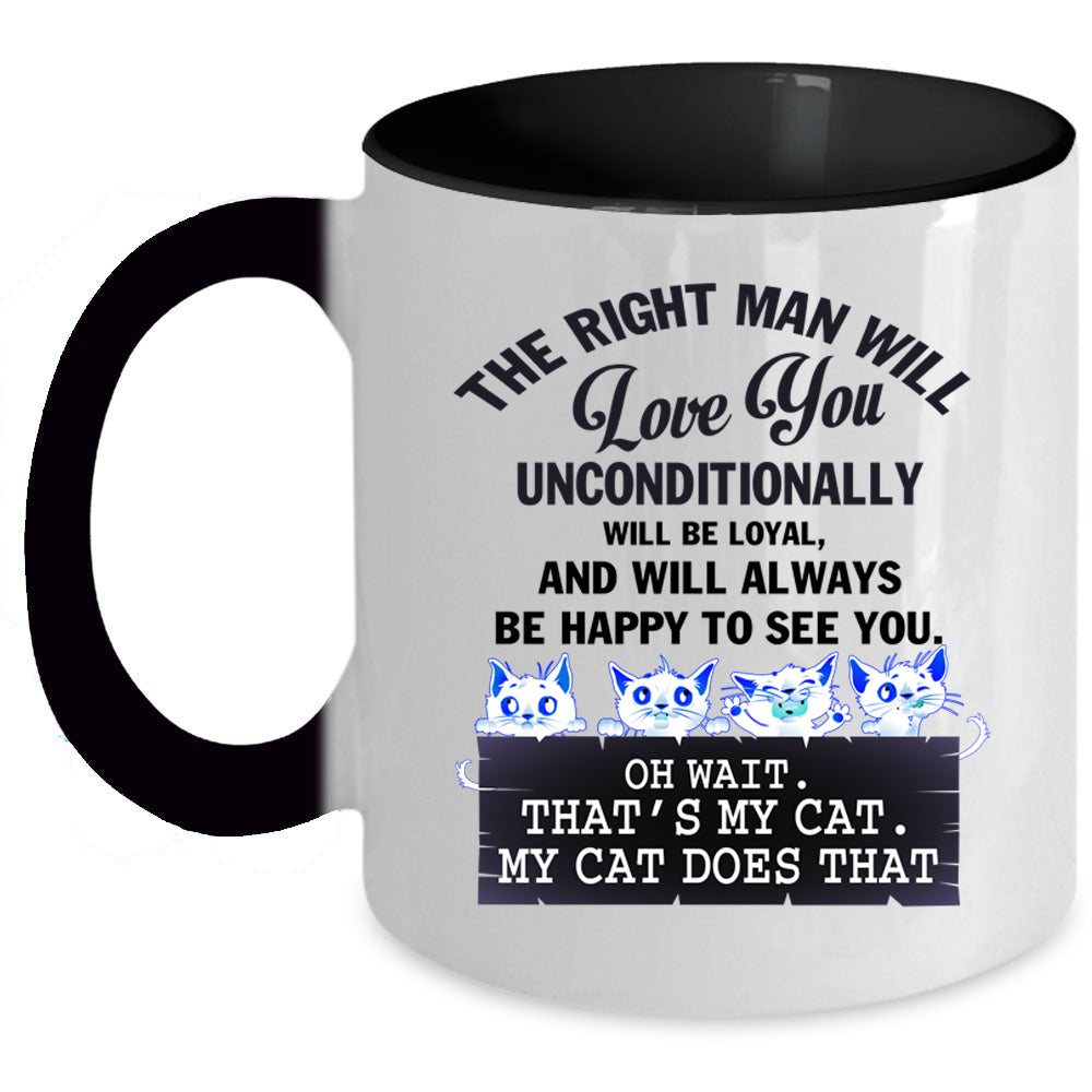 That's My Cat Coffee Mug, The Right Man Will Love You Accent Mug