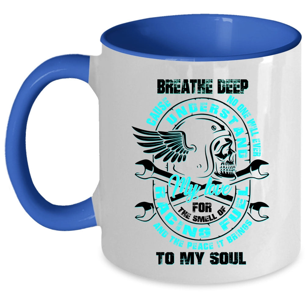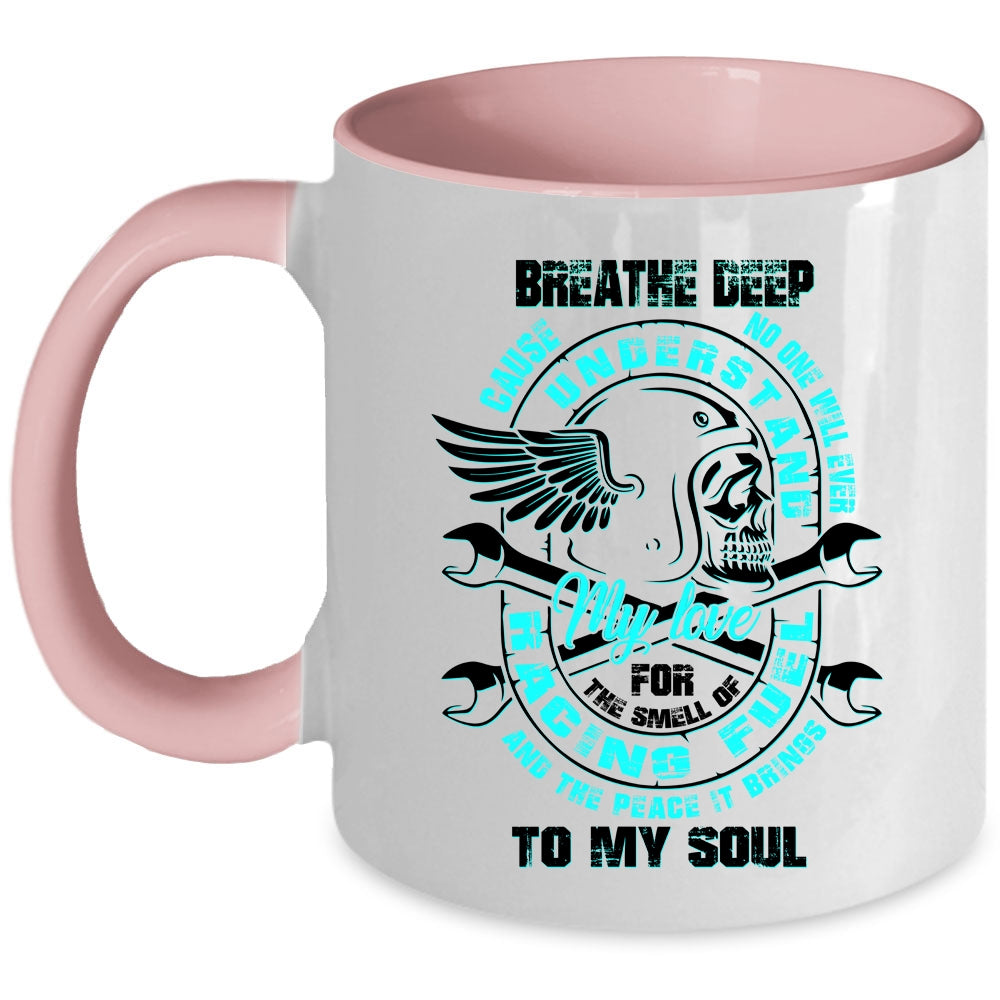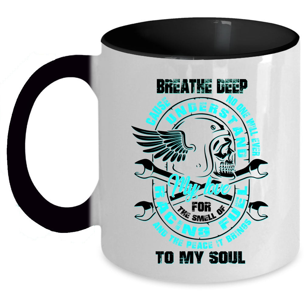 The Peace It Brings To My Soul Coffee Mug, My Love For The Smell Of Racing Accent Mug