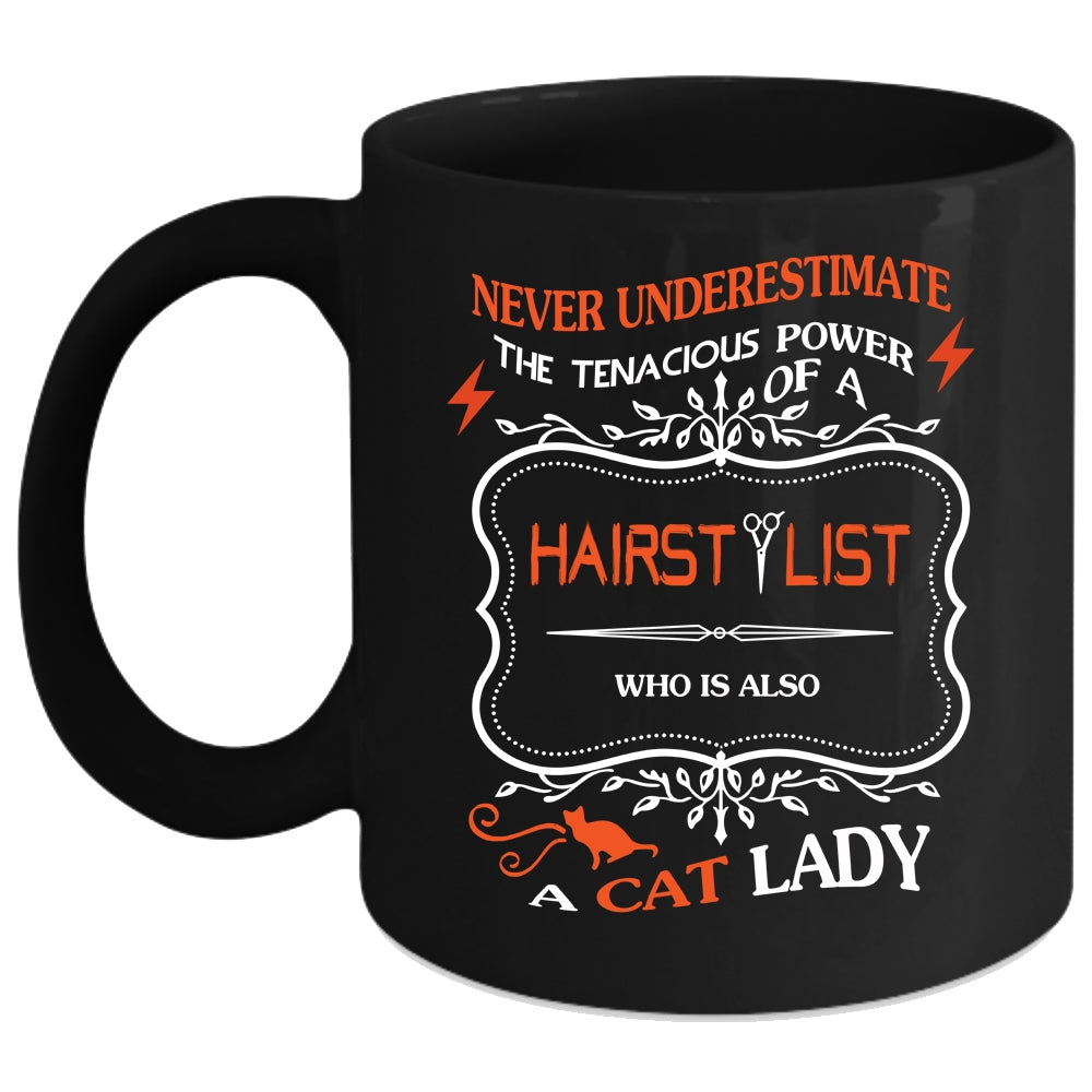 The Power Of A Hairstylist Coffee Mug, Who Is Also A Cat Lady Coffee Cup