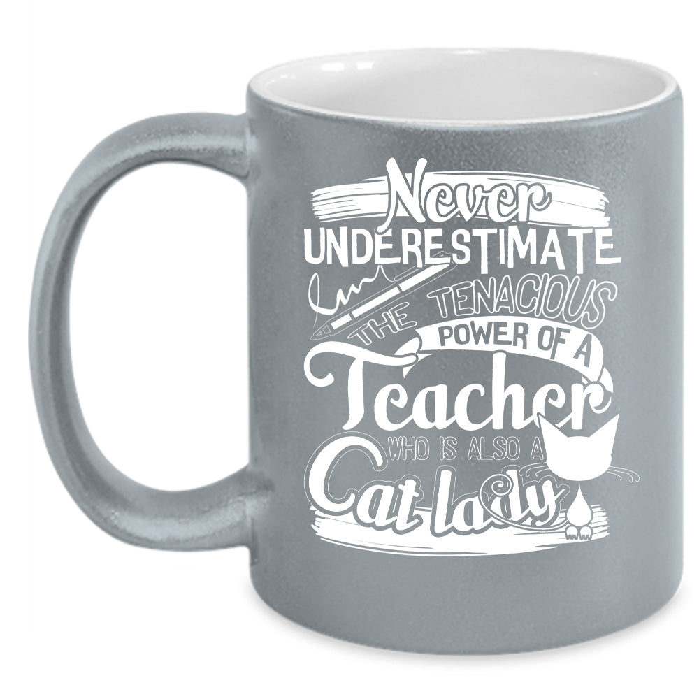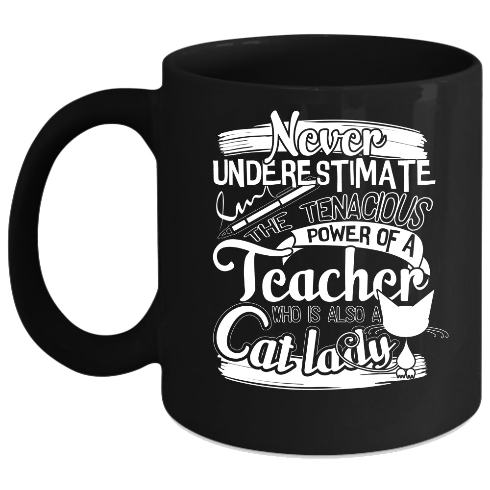 The Power Of A Teacher Is Also A Cat Lady Coffee Mug, Cute Teacher Coffee Cup