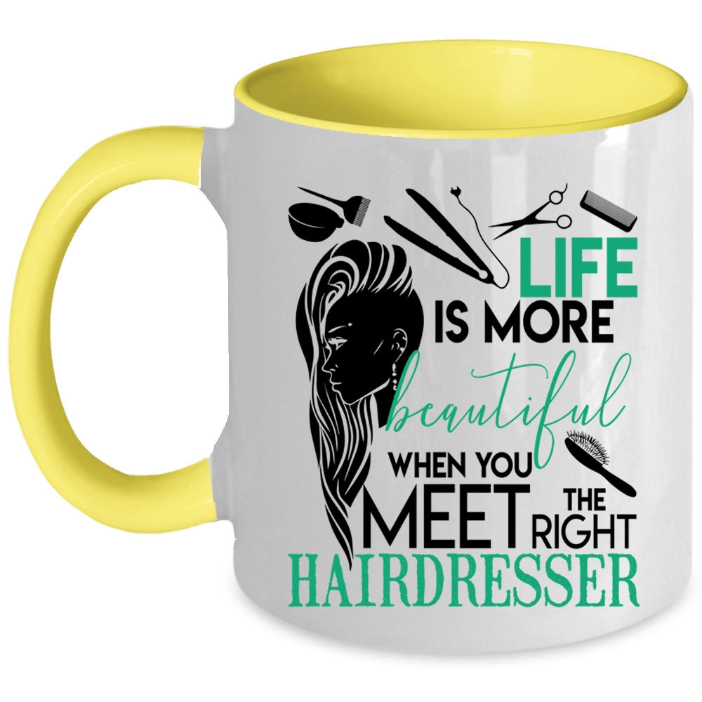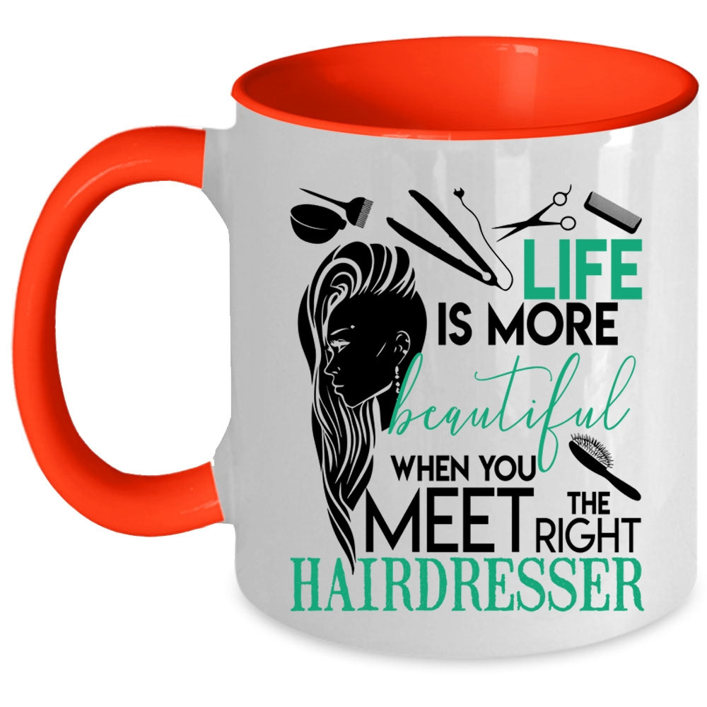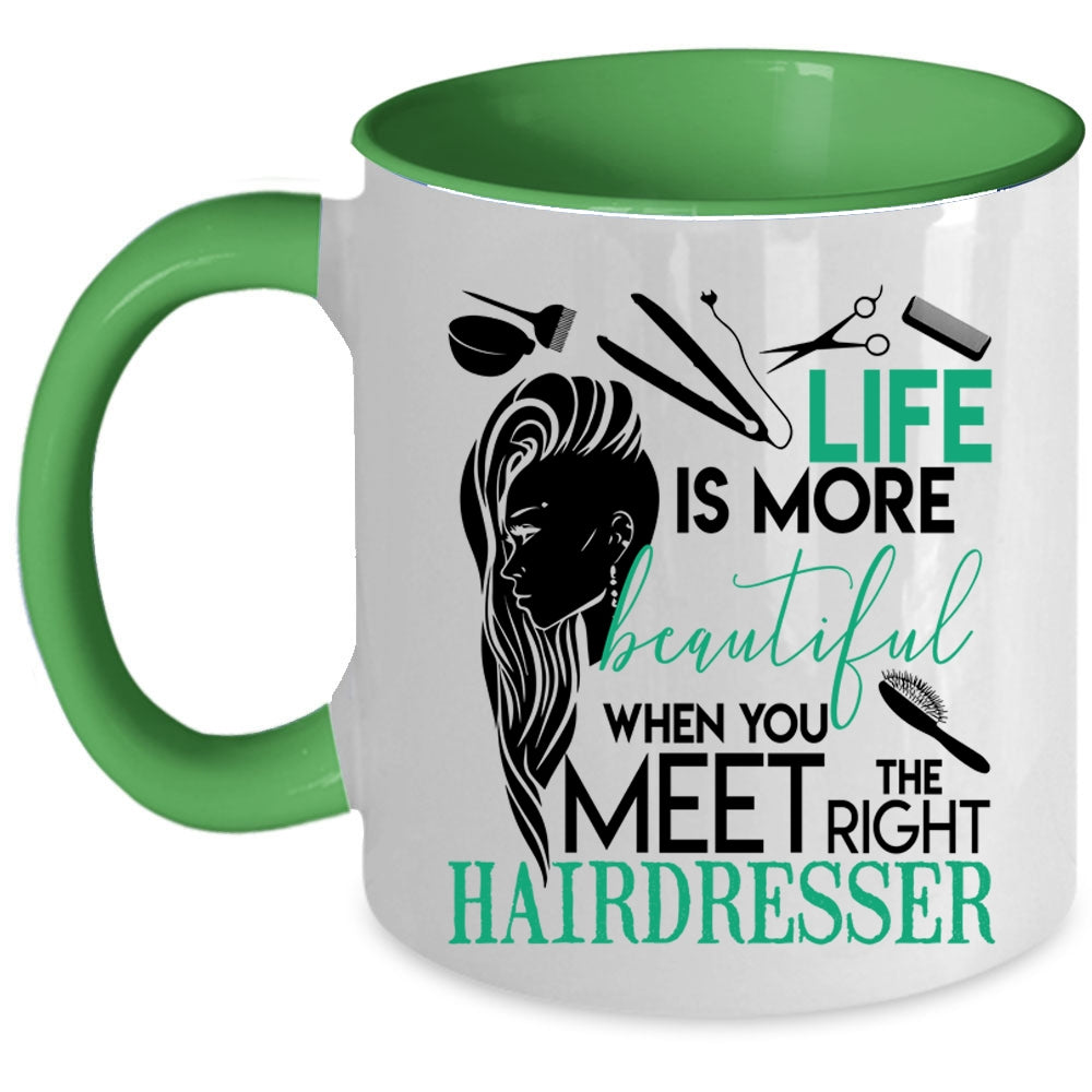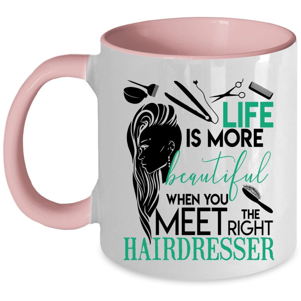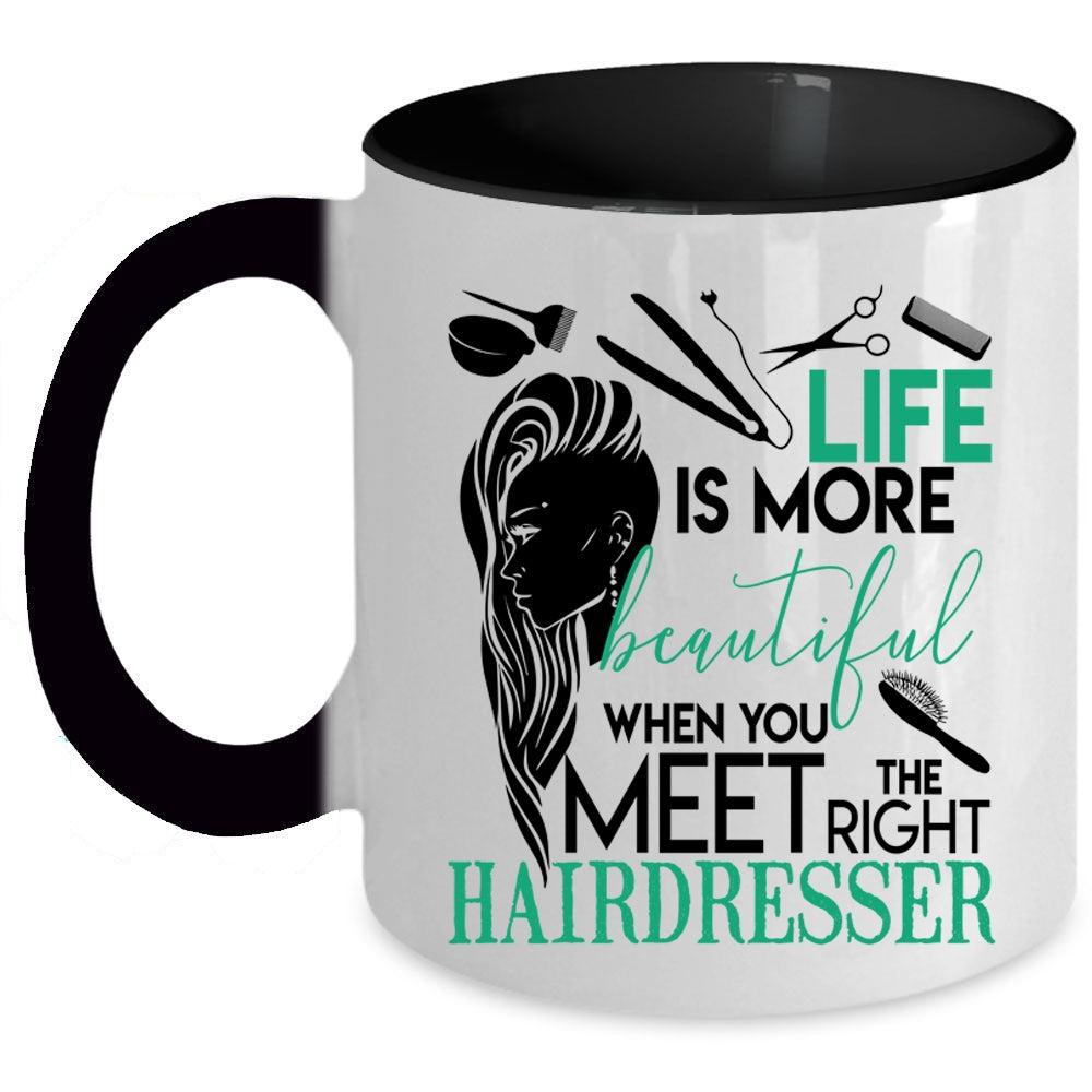 The Right Hairdresser Coffee Mug, Life Is More Beautiful Accent Mug