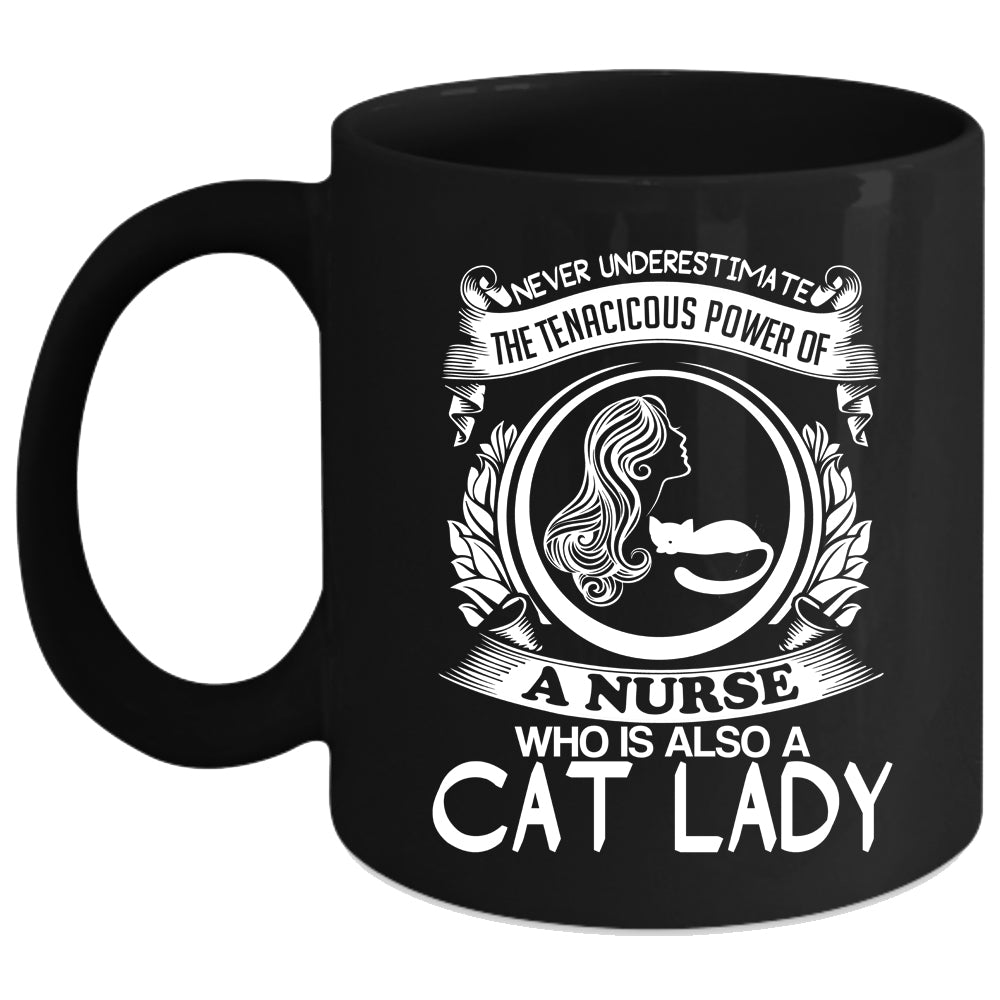 The Tenacicous Power Of A Nurse Coffee Mug, Cat Lady Coffee Cup