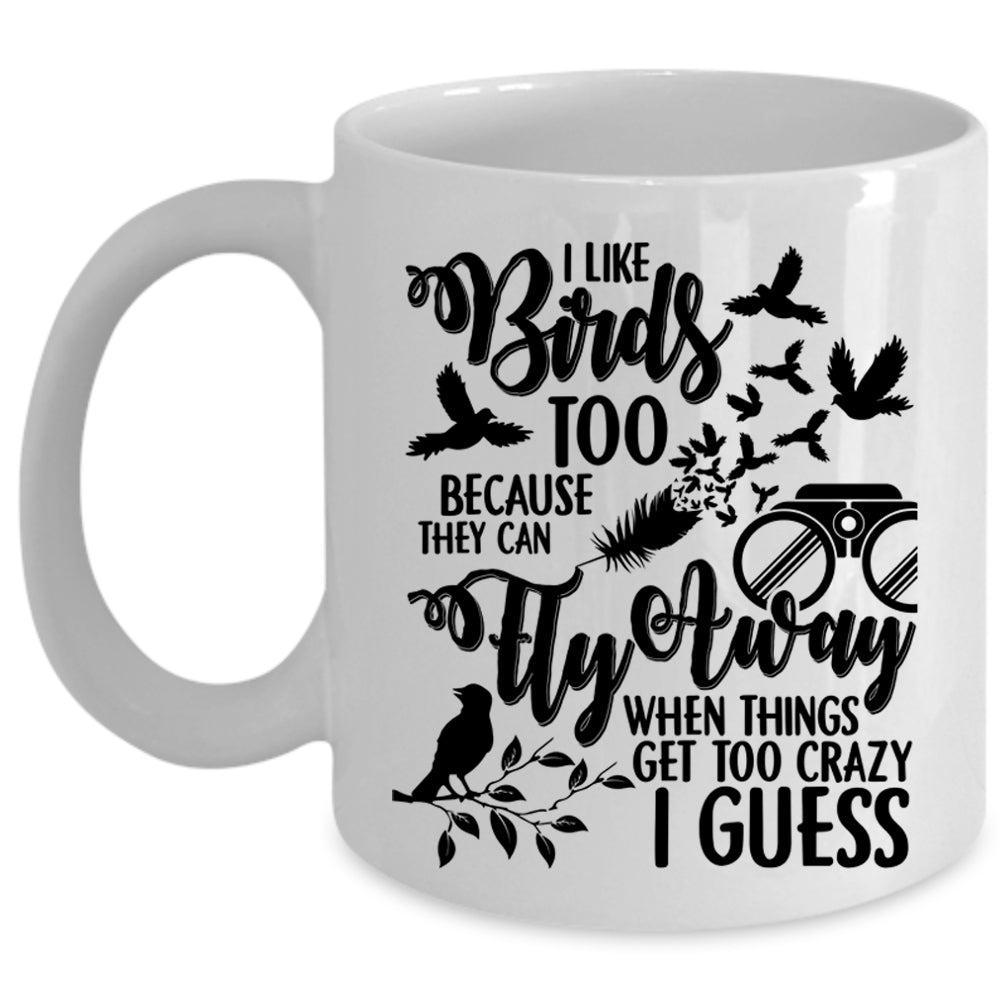 They Can Fly Away Coffee Mug, I Like Birds Too Cup