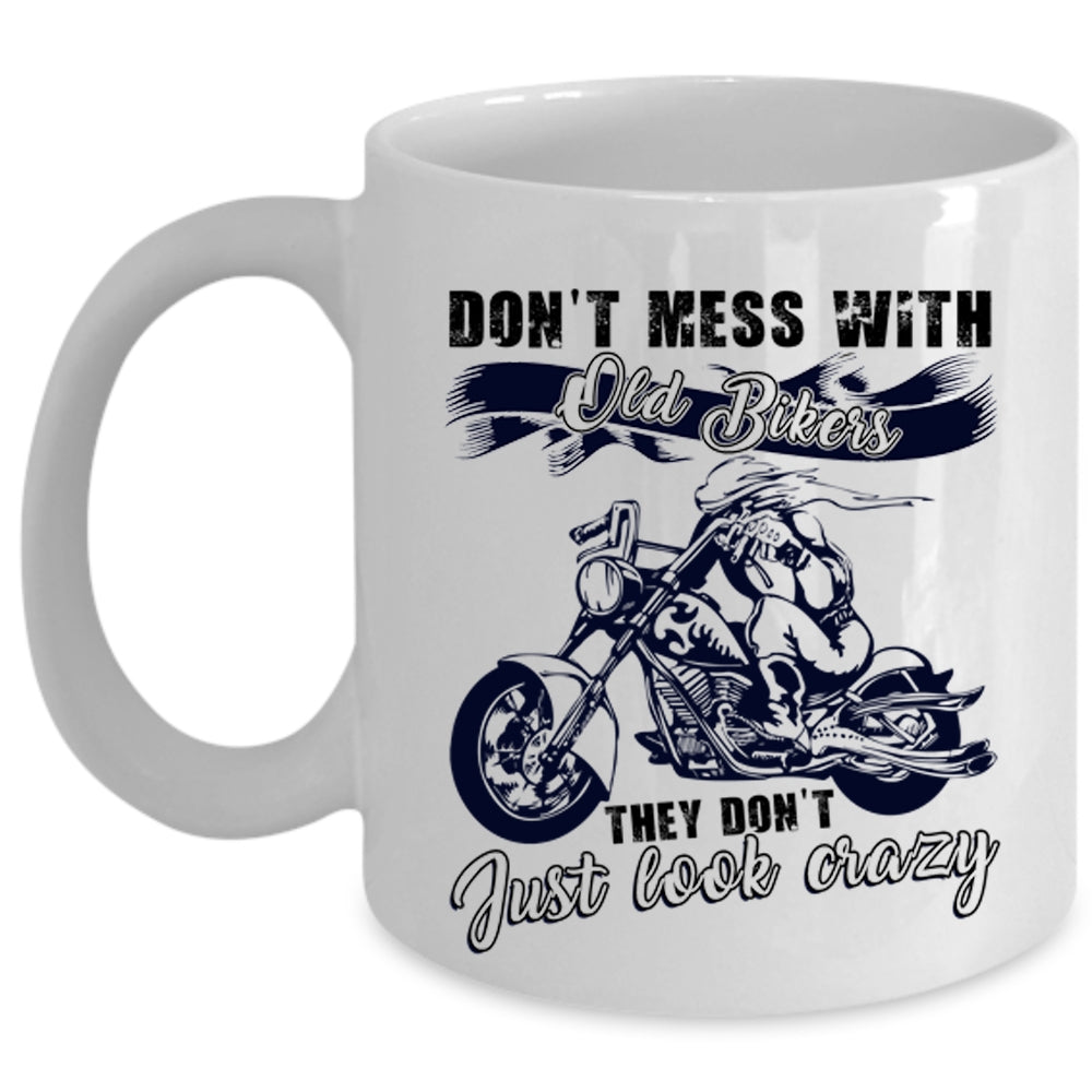 They Don't Just Look Crazy Coffee Mug, Don't Mess With Old Bikers Cup