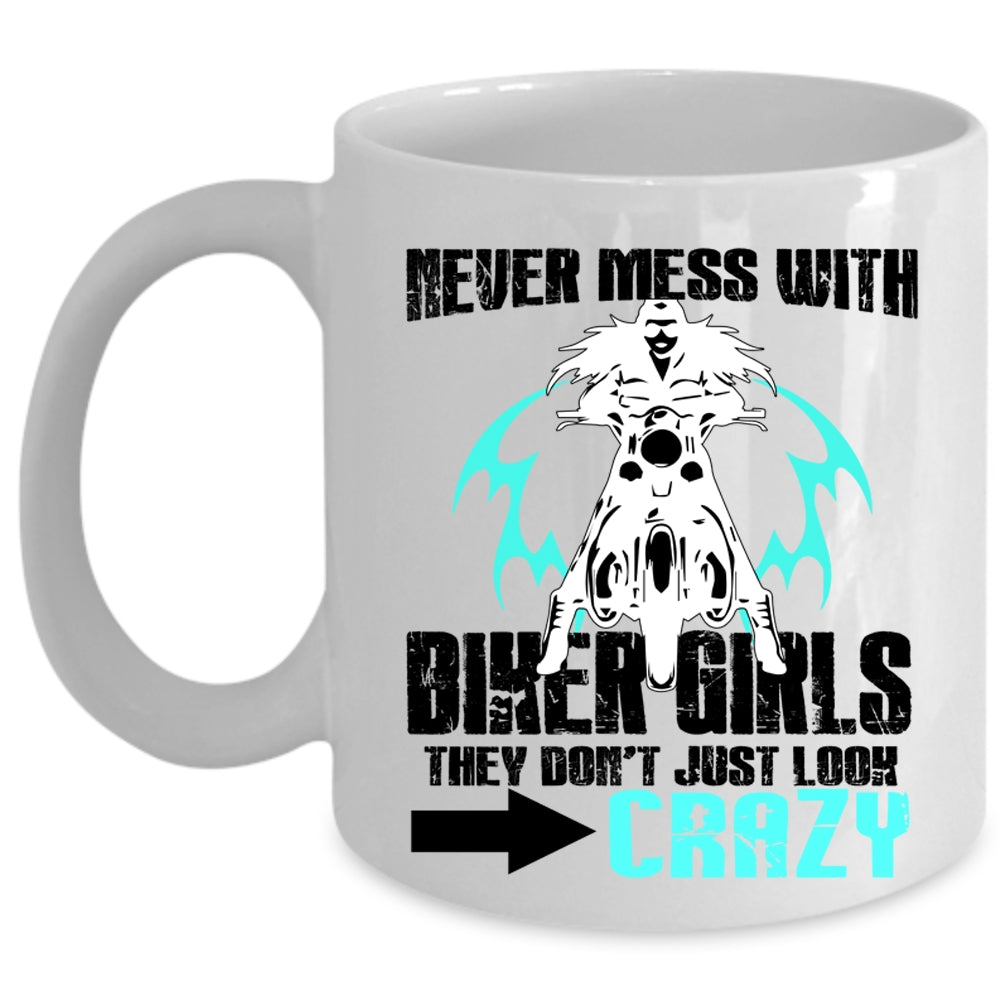 They Don't Just Look Crazy Coffee Mug, Never Mess With Biker Girls Cup