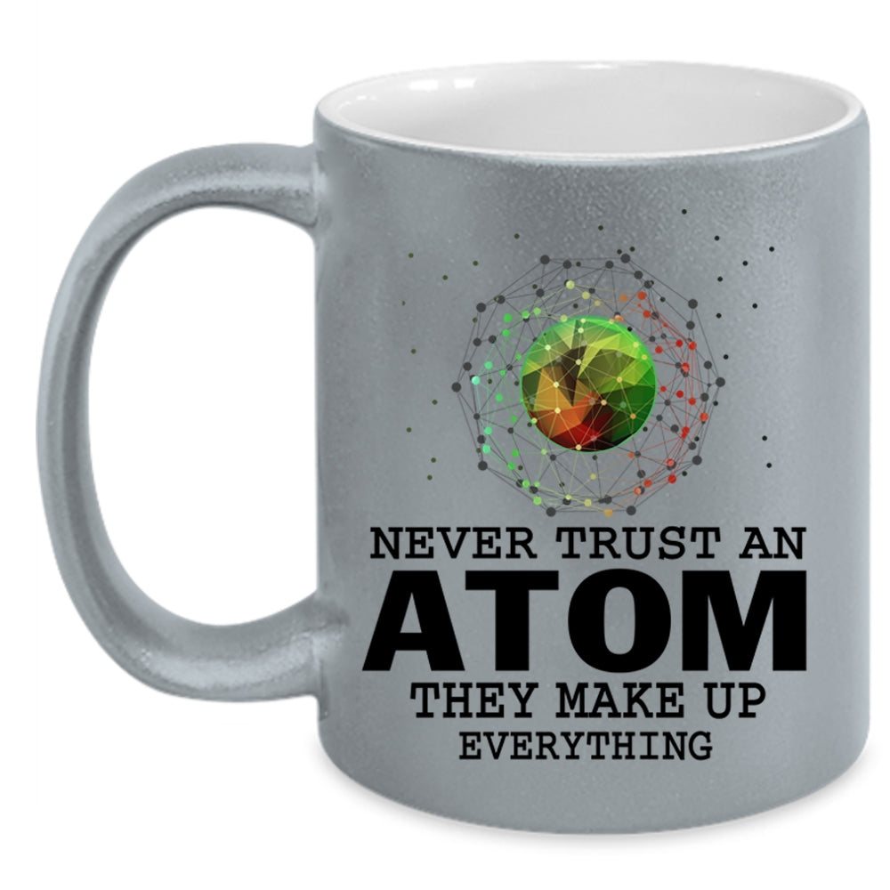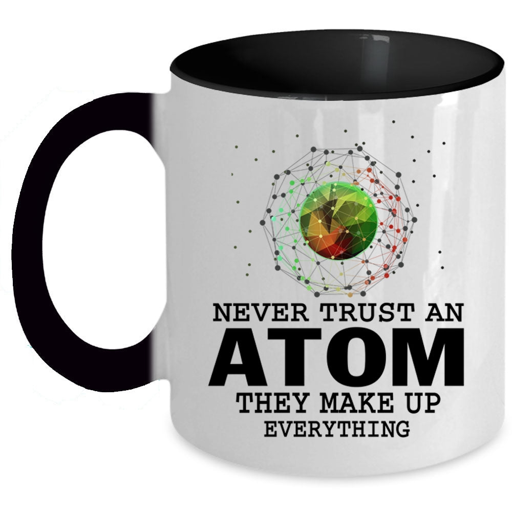They Make Up Everything Coffee Mug, Never Trust An Atom Accent Mug