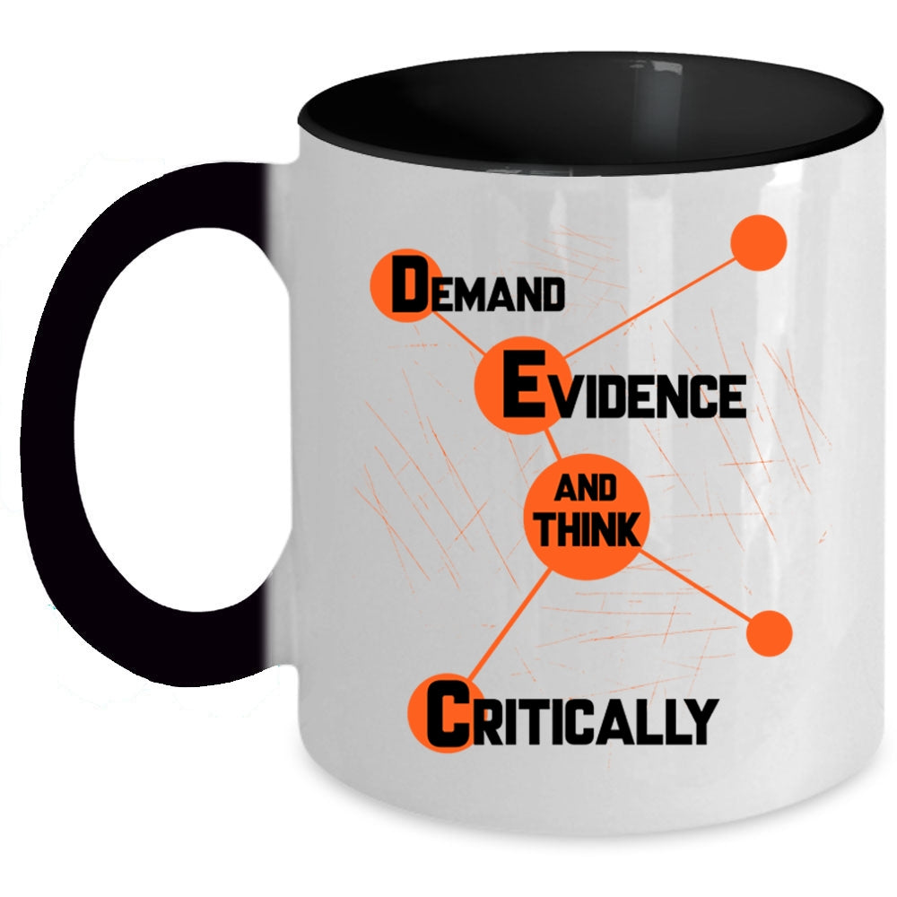 Think Critically Coffee Mug, Demand Evidence Accent Mug