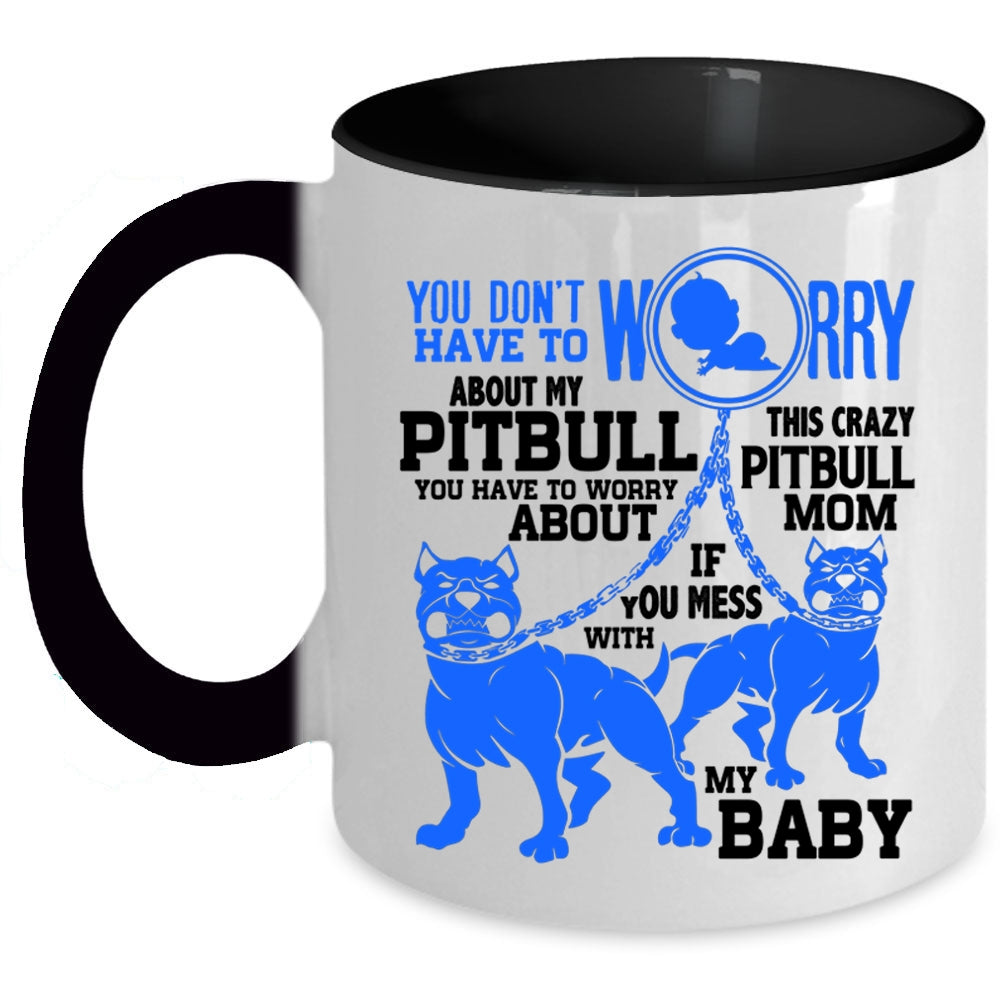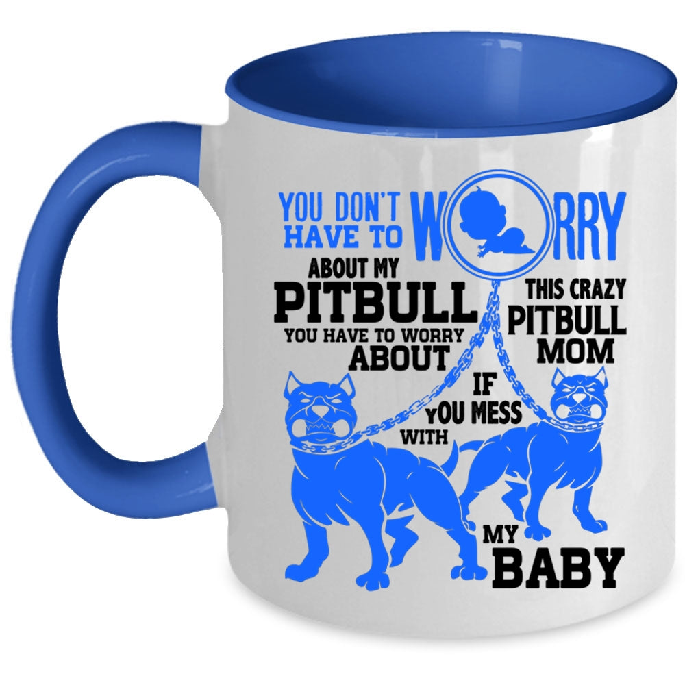 This Crazy Pitbull Mom Coffee Mug, Don't Worry About My Pitbull Accent Mug