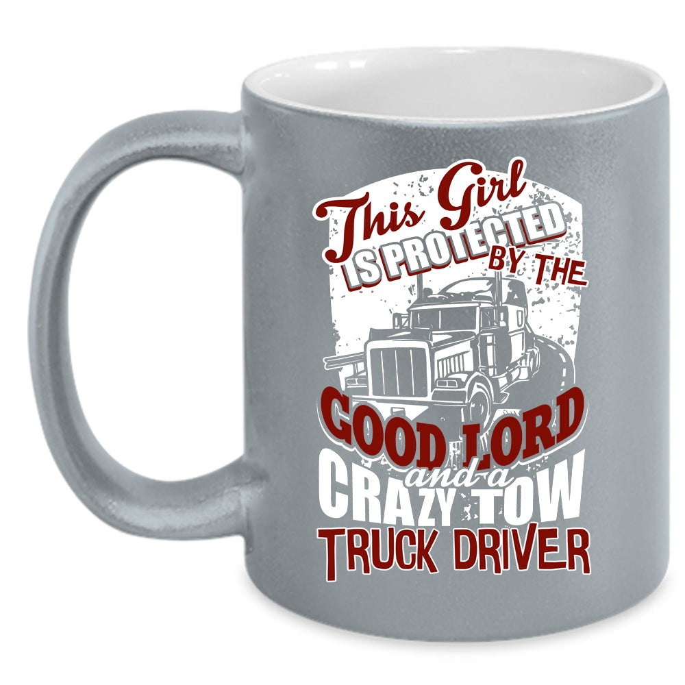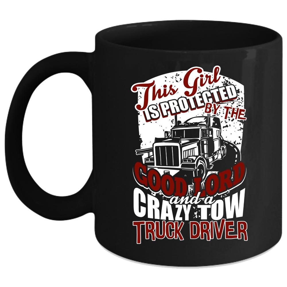 This Girl Is Protected By A Crazy Tow Truck Driver Coffee Mug, Crazy Trucker Coffee Cup