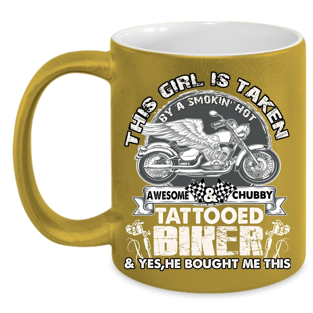 This Girl Is Taken By A Tattooed Biker Coffee Mug, Awesome Bikers Coffee Cup
