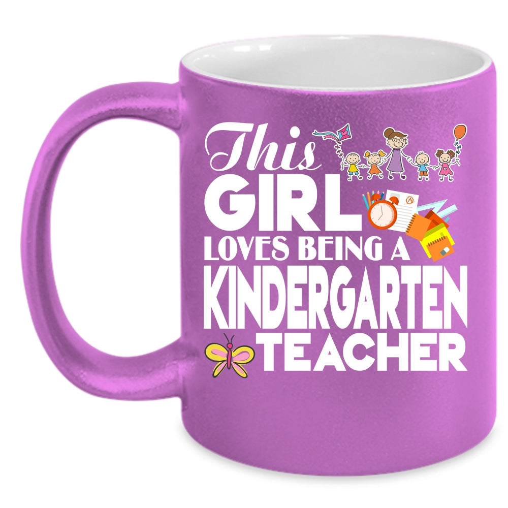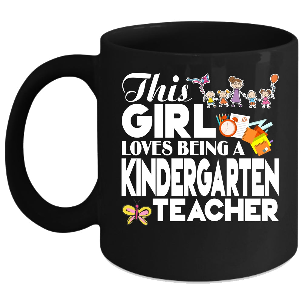 This Girl Loves Being A Kindergarten Teacher Coffee Mug, Cute English Teacher Coffee Cup