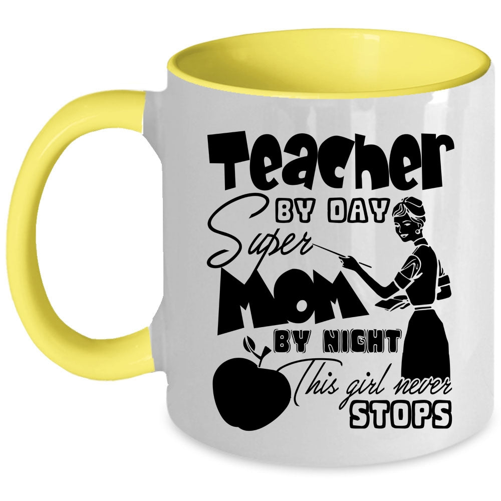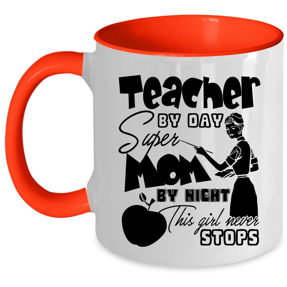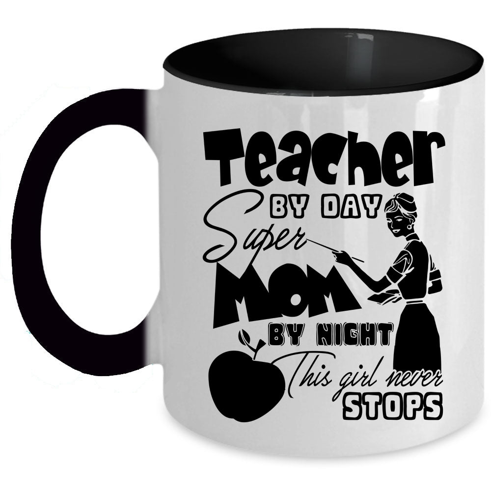 This Girl Never Stops Coffee Mug, Teacher By Day Mom By Night Accent Mug