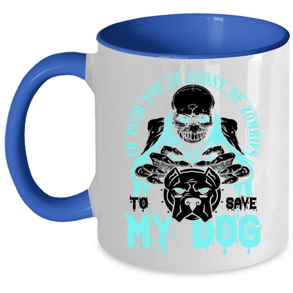 To Save My Dog Coffee Mug, I'd Push You In Front Of Zombies Accent Mug