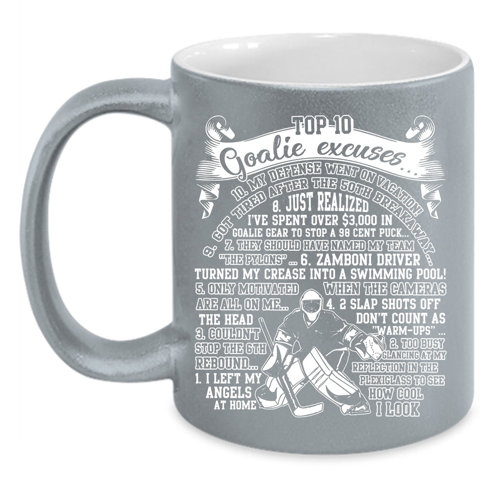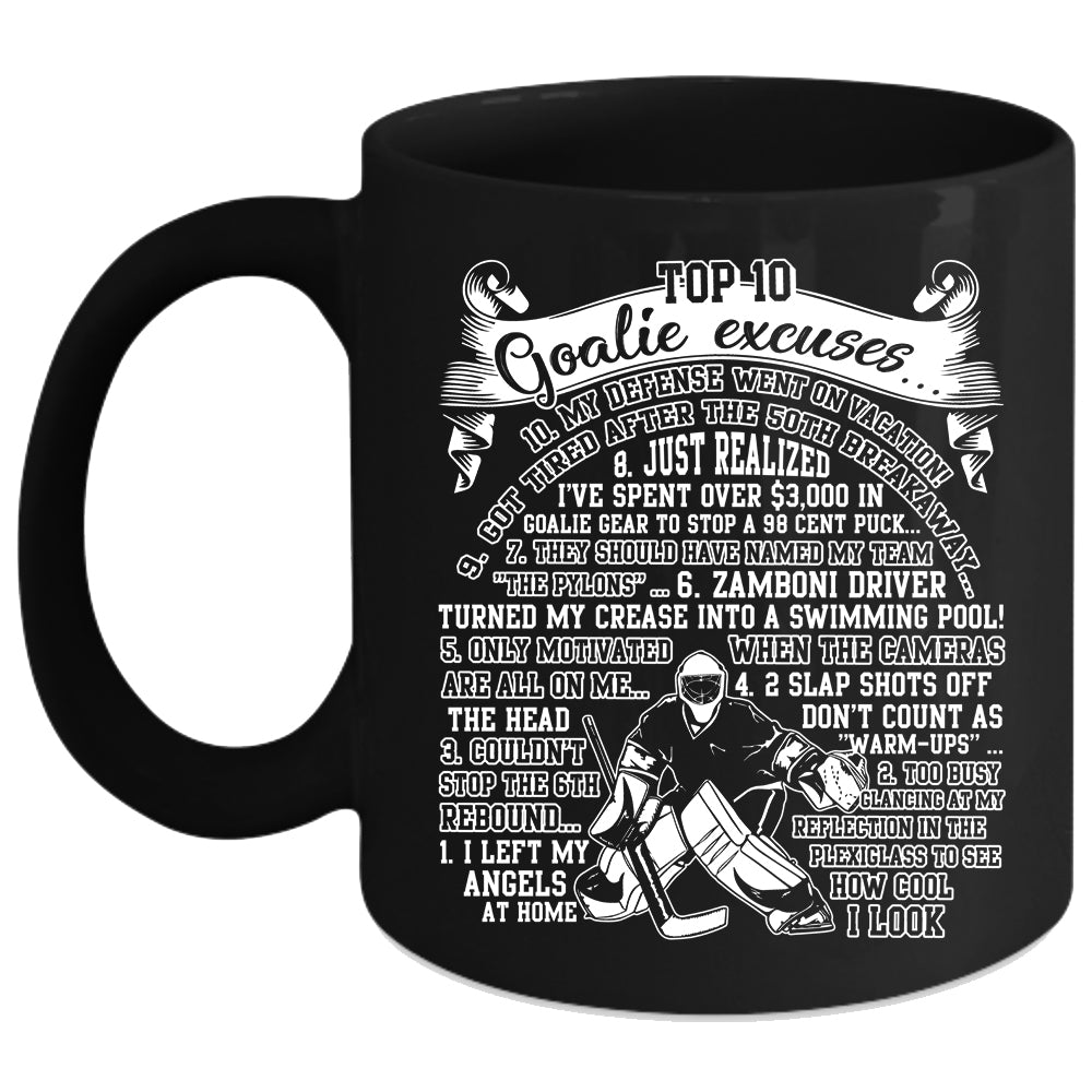 Top 10 Goalie Excuses Coffee Mug, I Left My Angels At Home Coffee Cup
