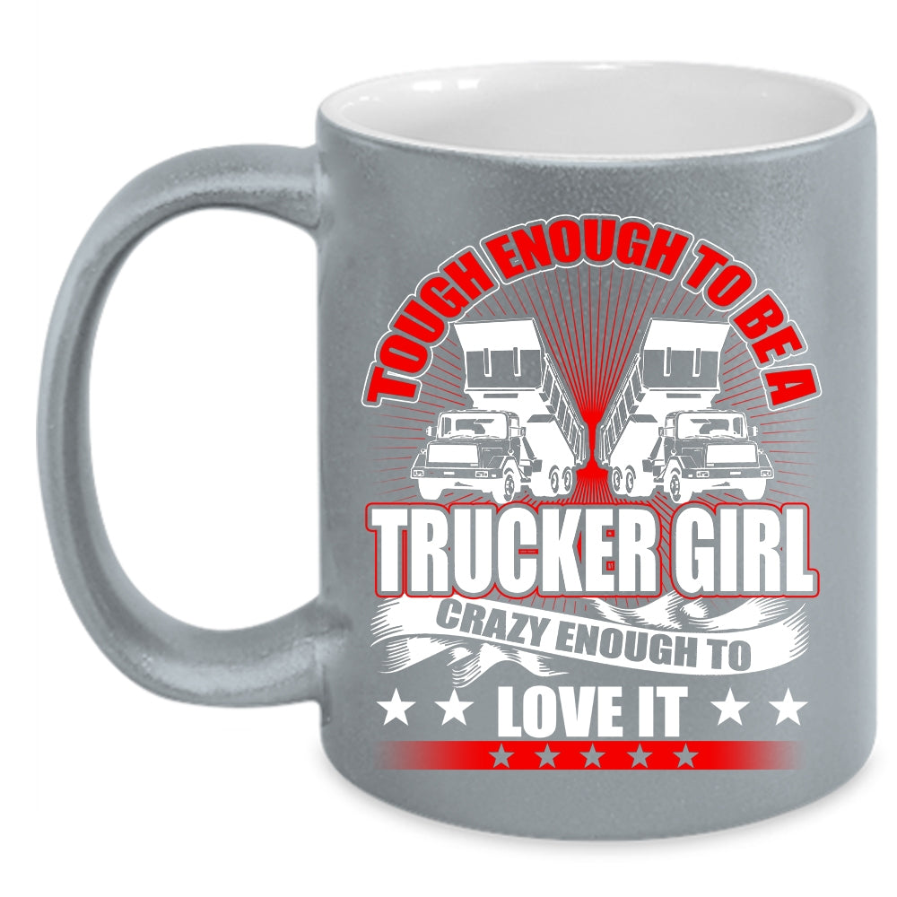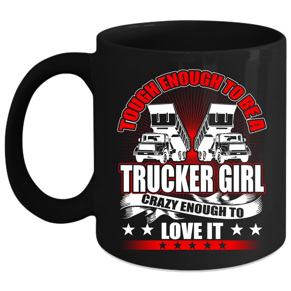 Tough Enough To Be A Trucker Girl Coffee Mug, Crazy Enough To Love It Coffee Cup