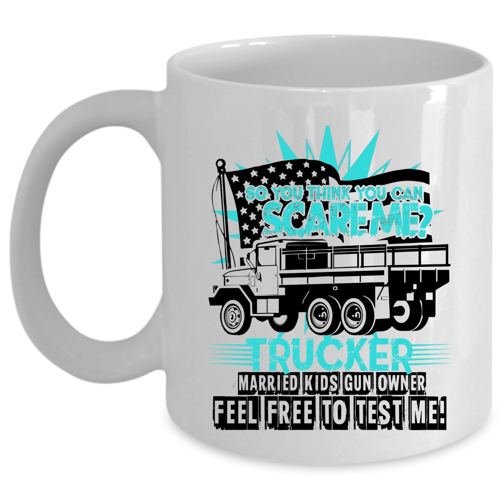 Trucker Coffee Mug, So You Think You Can Scare Me Cup